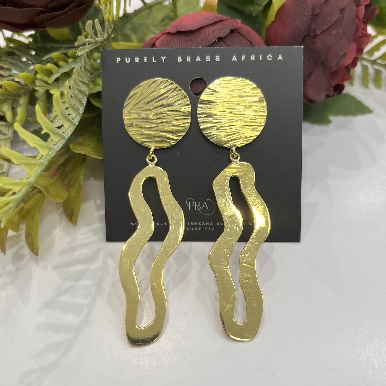 'Amahle' is a stunning pair of earrings made from polished golden brass, embodying a sculptural and organic aesthetic.