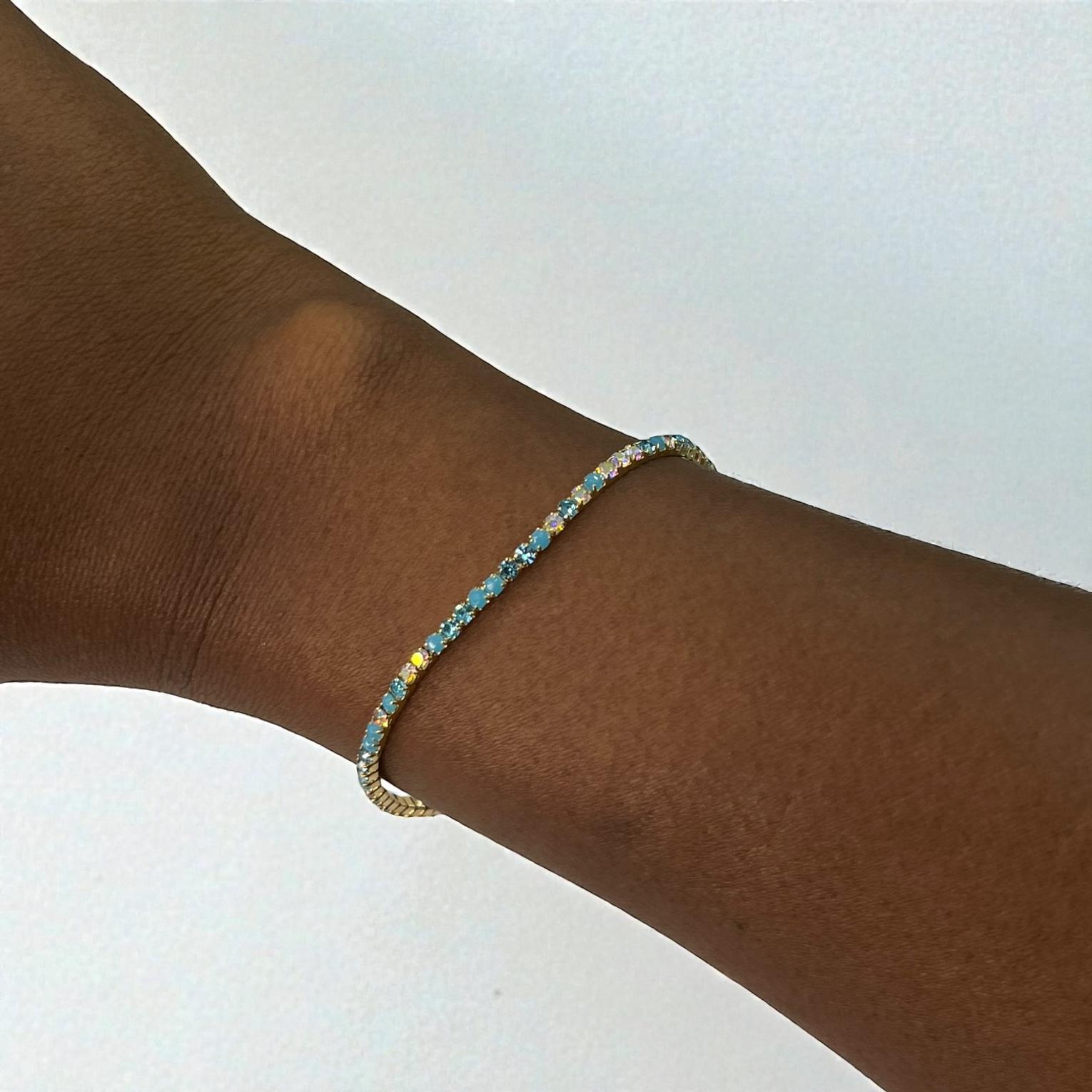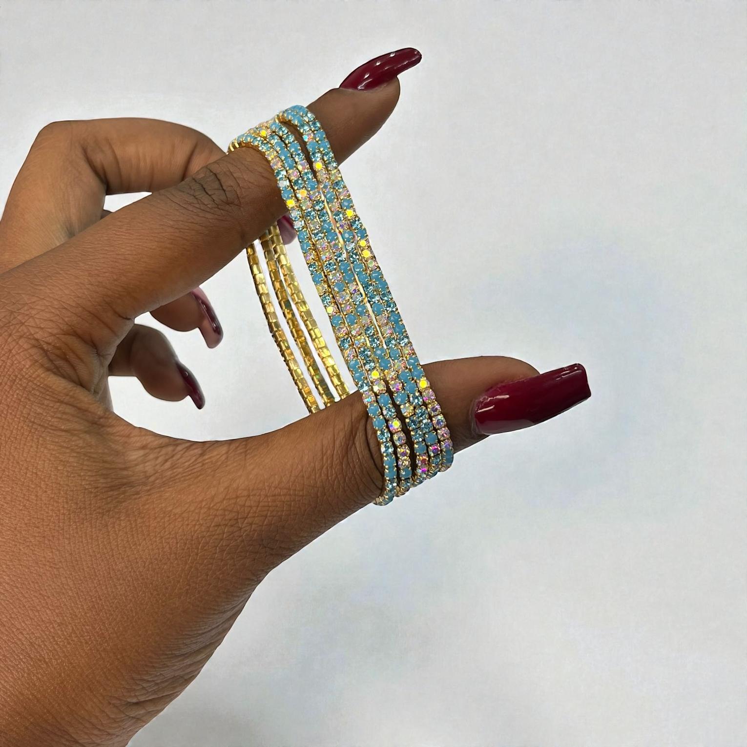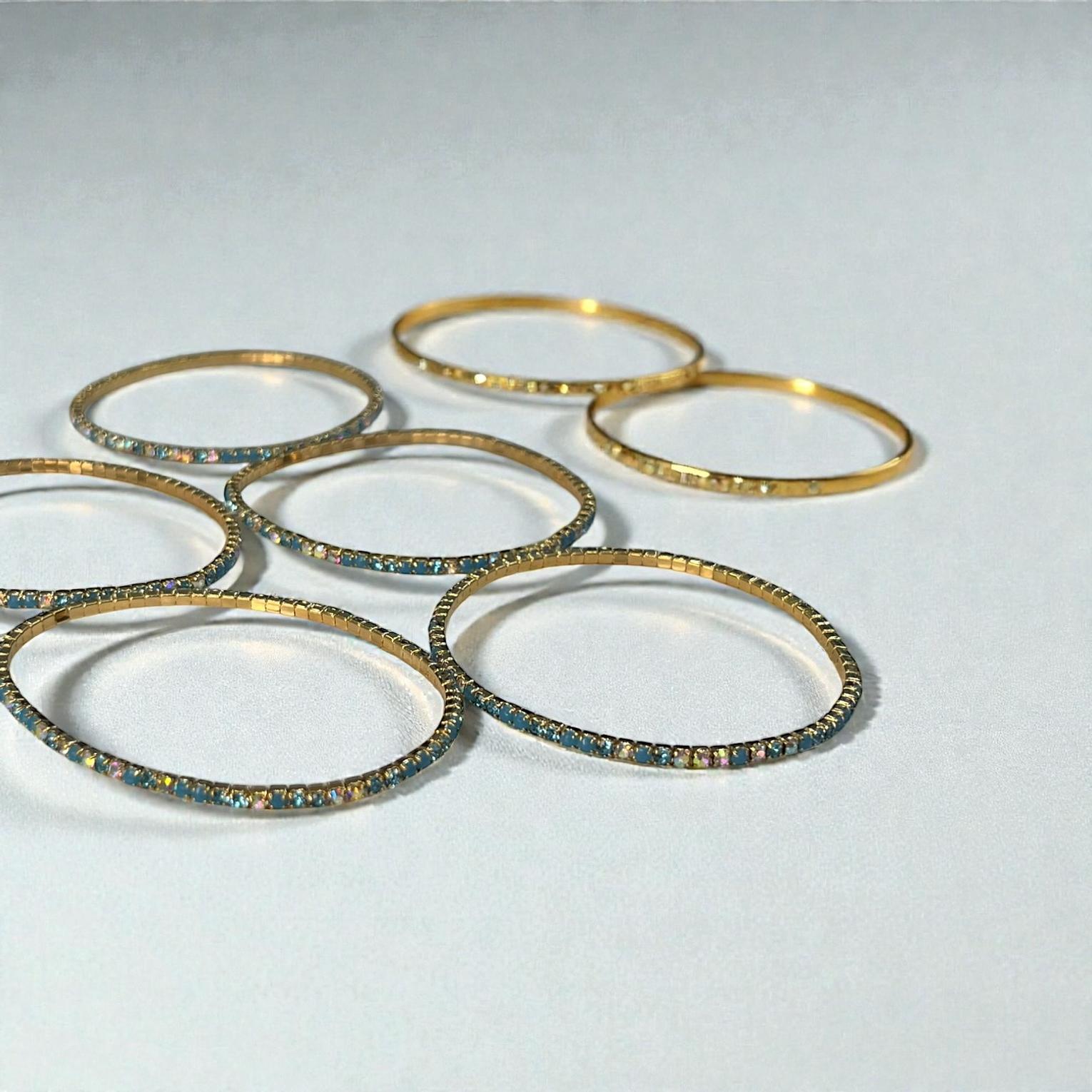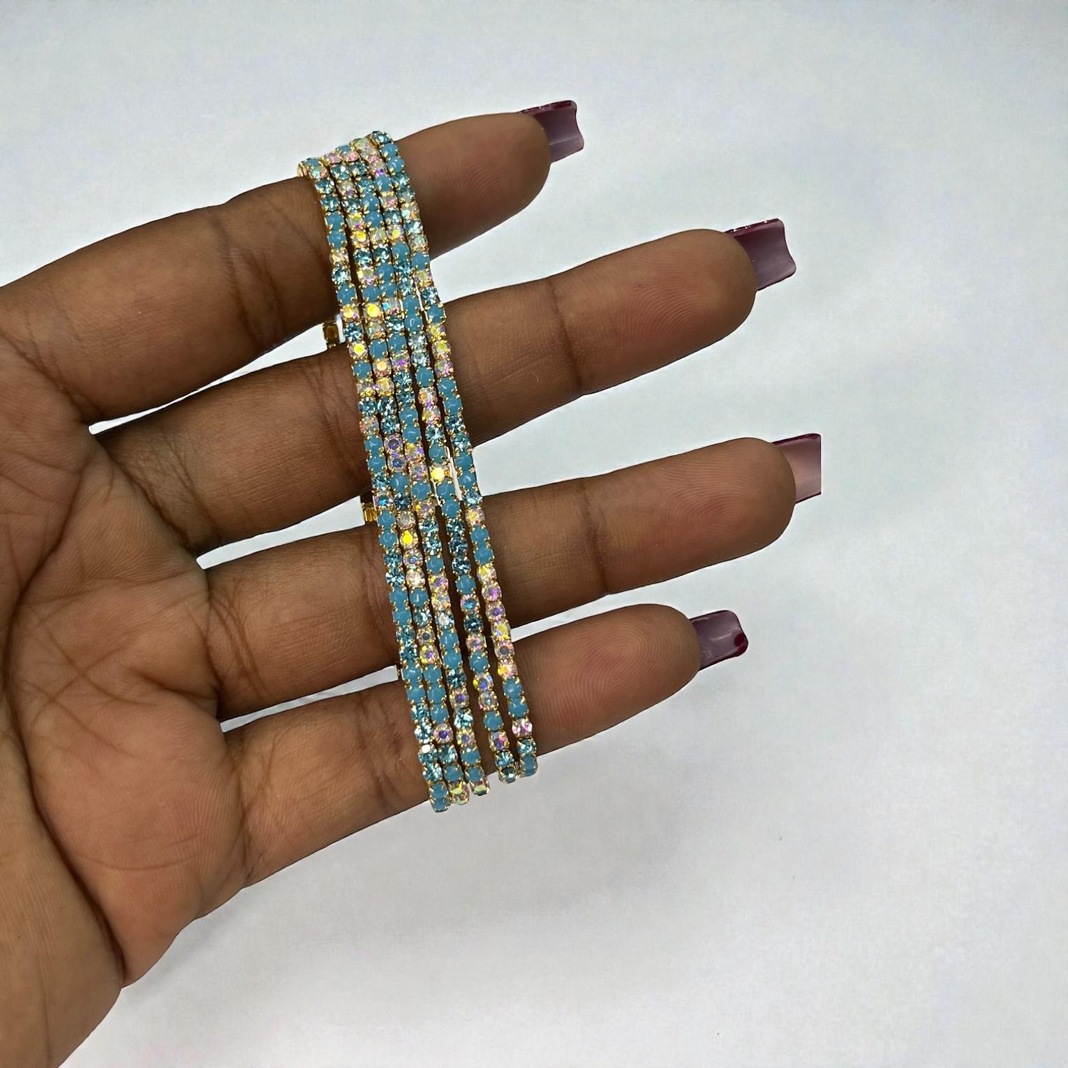 These are ''bejewelled''or ''strass''bracelets featuring multiple thin,elasstic strands.
