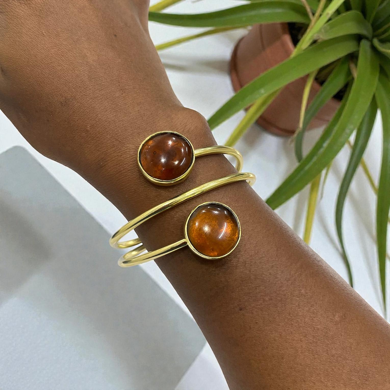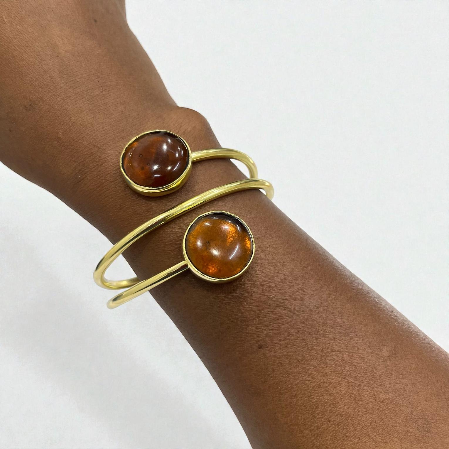 The cuff features a bold,open spiral design that allows it to wrap comfortably around the wrist.