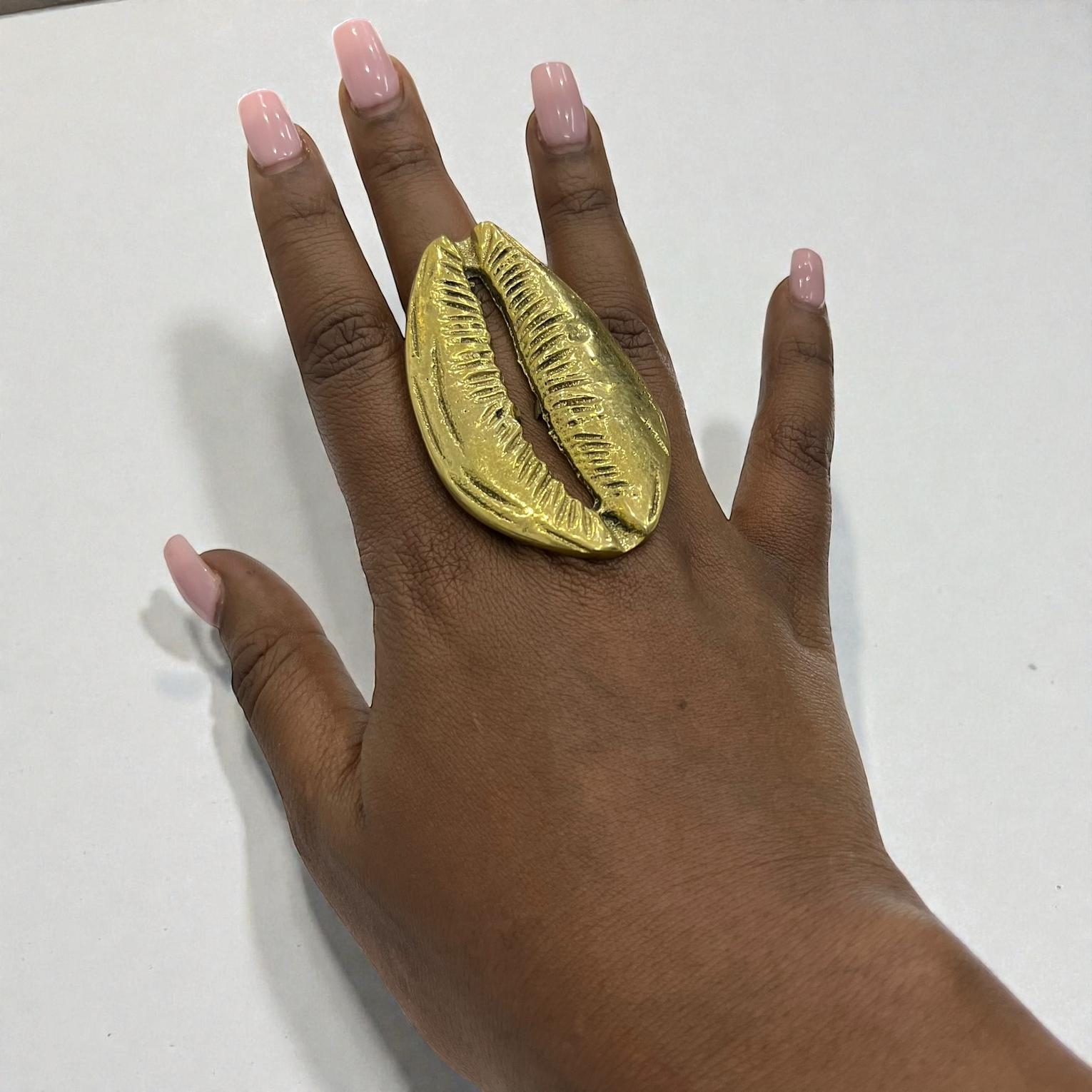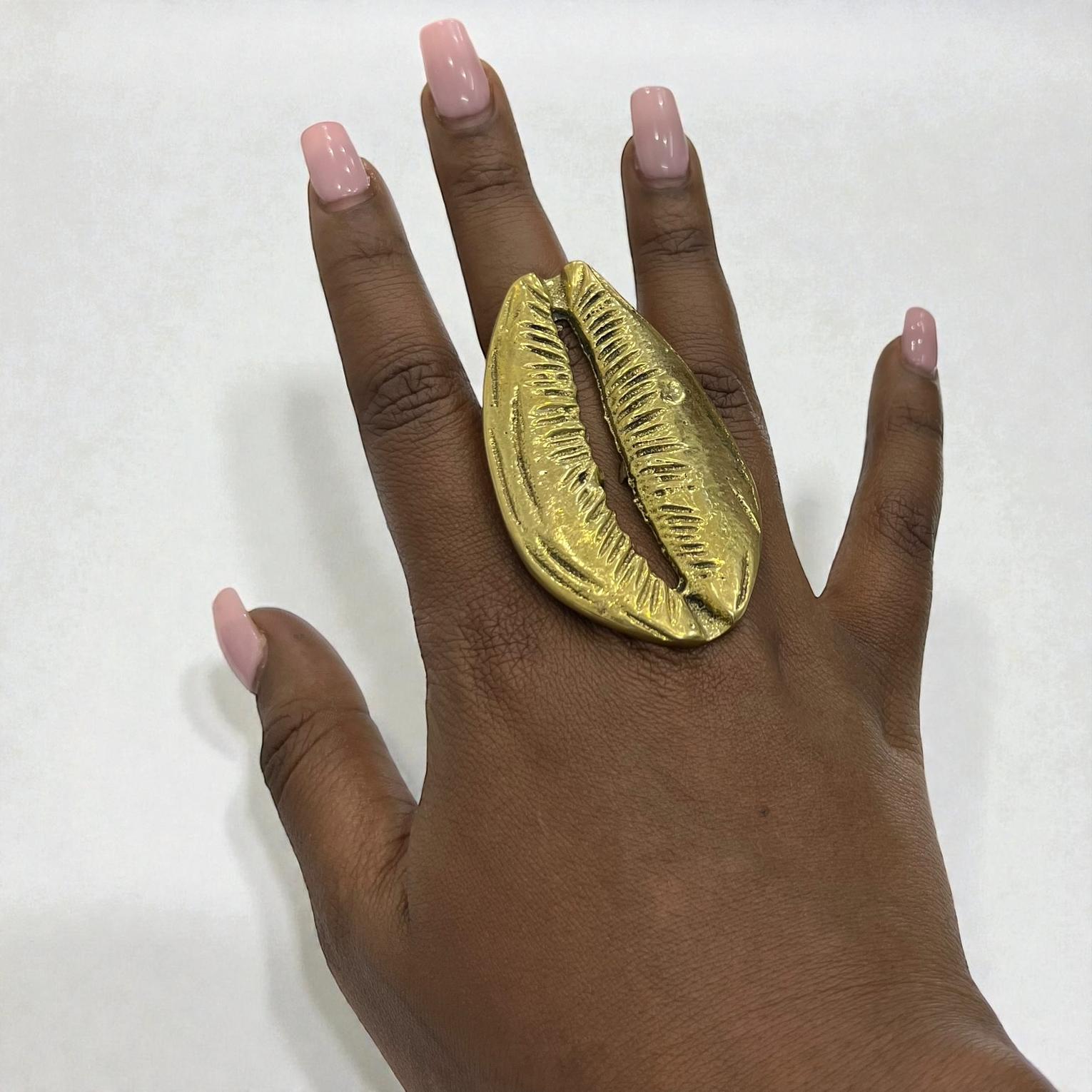 These rings often feature natural cowrie shells set in various metals,commonly brass or gold-plated materials, and are frequently adjustable to fit differentfinger sizes.