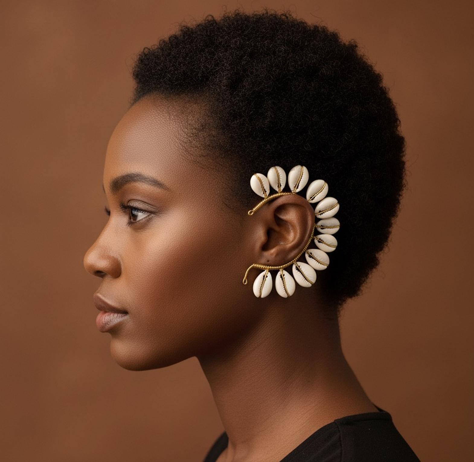 Cowrie Shell Earcuff ,a unique Afrocentric jewerly design handcrafted in Kenya.