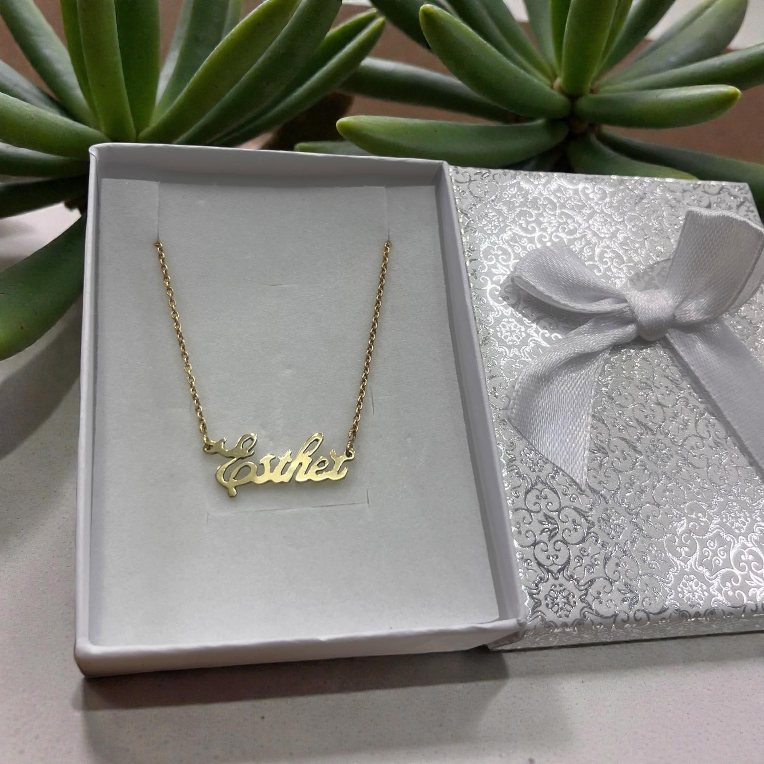 The necklace comes with a horizontal name pendant of your choice with up to 1o characters.