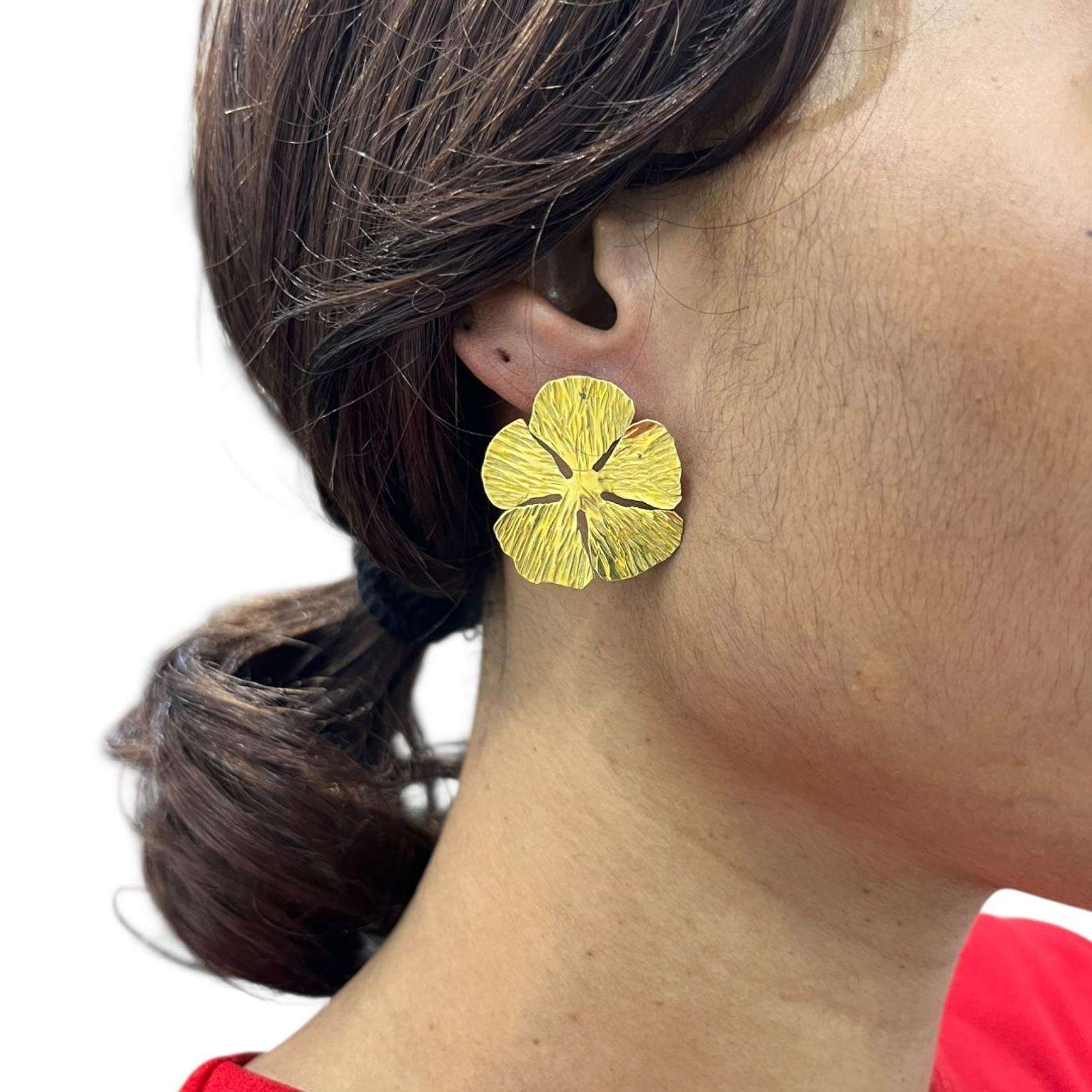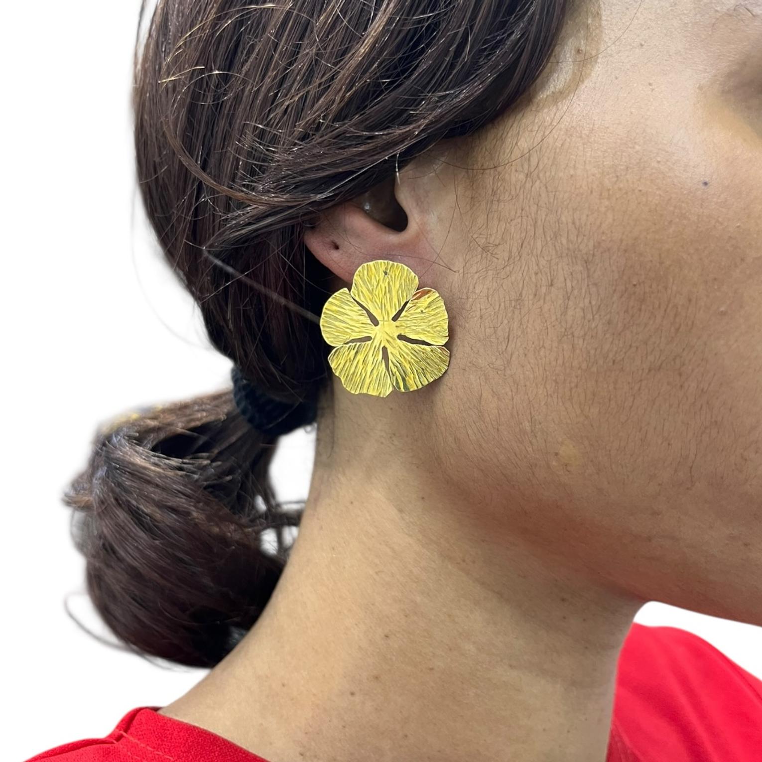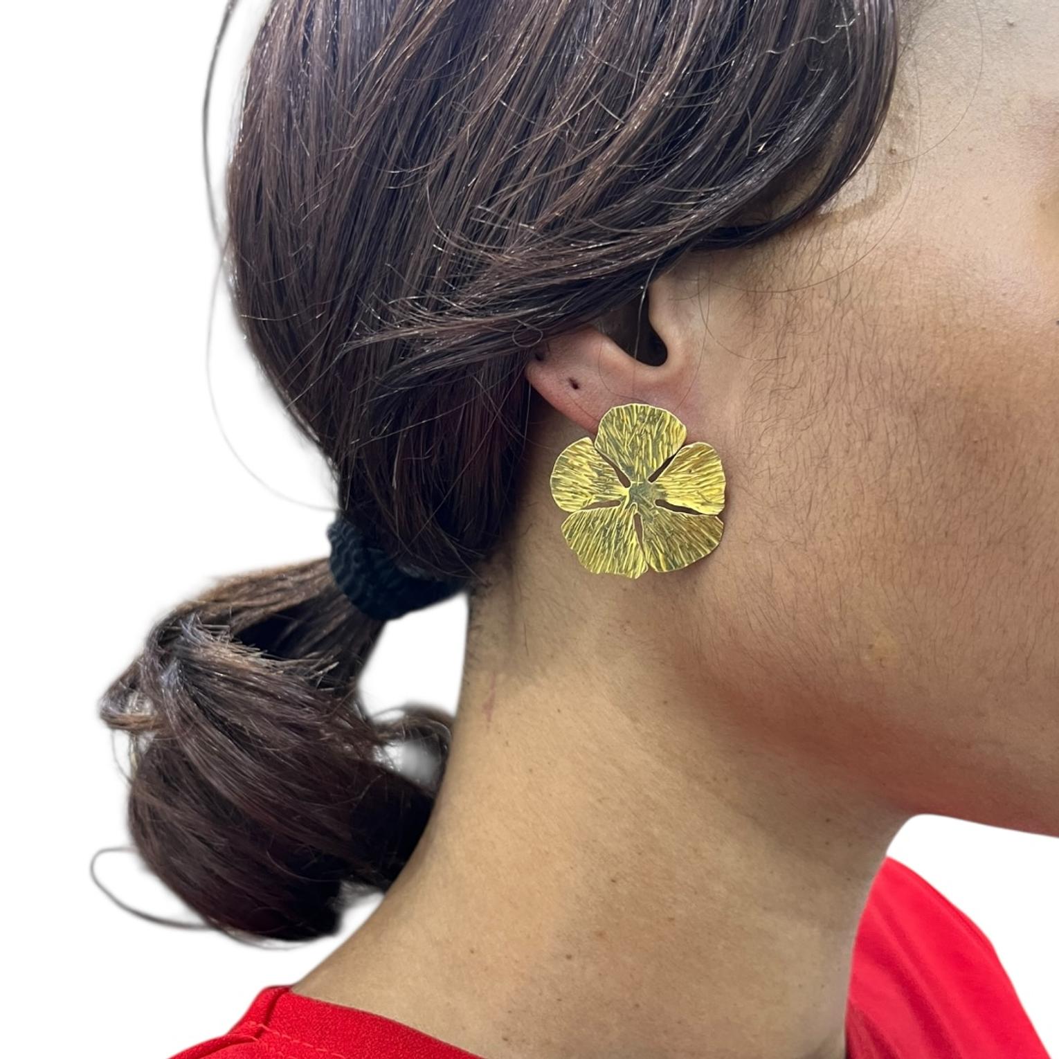 The earrings is a statement piece featuring a texured,abstract floral design.