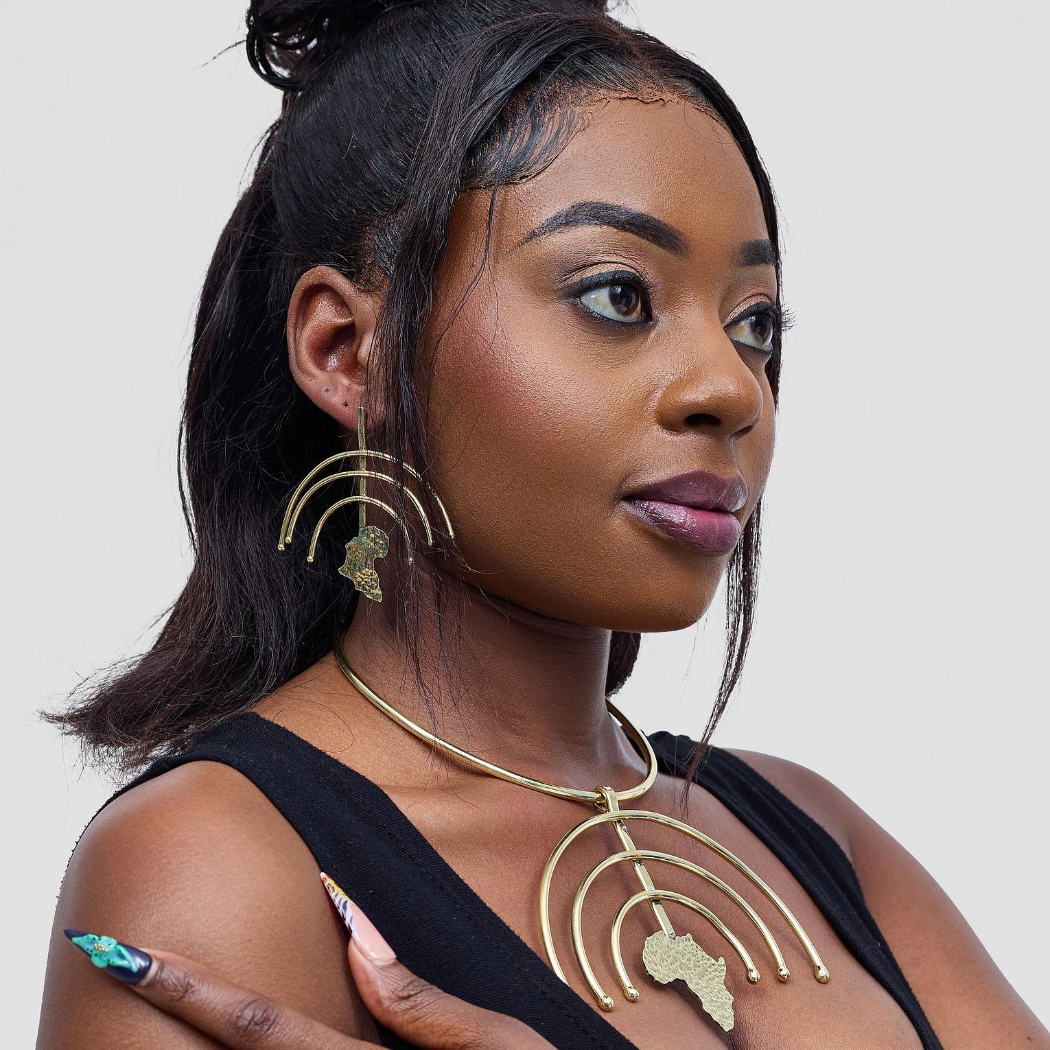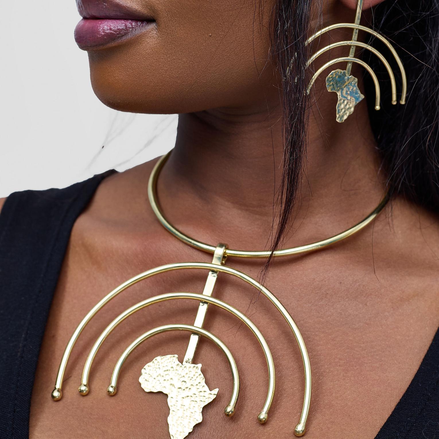 Perfectly coordinated African choker, earrings, bracelet, and ring ready to elevate any look.