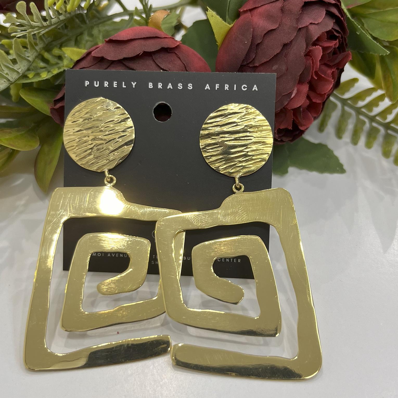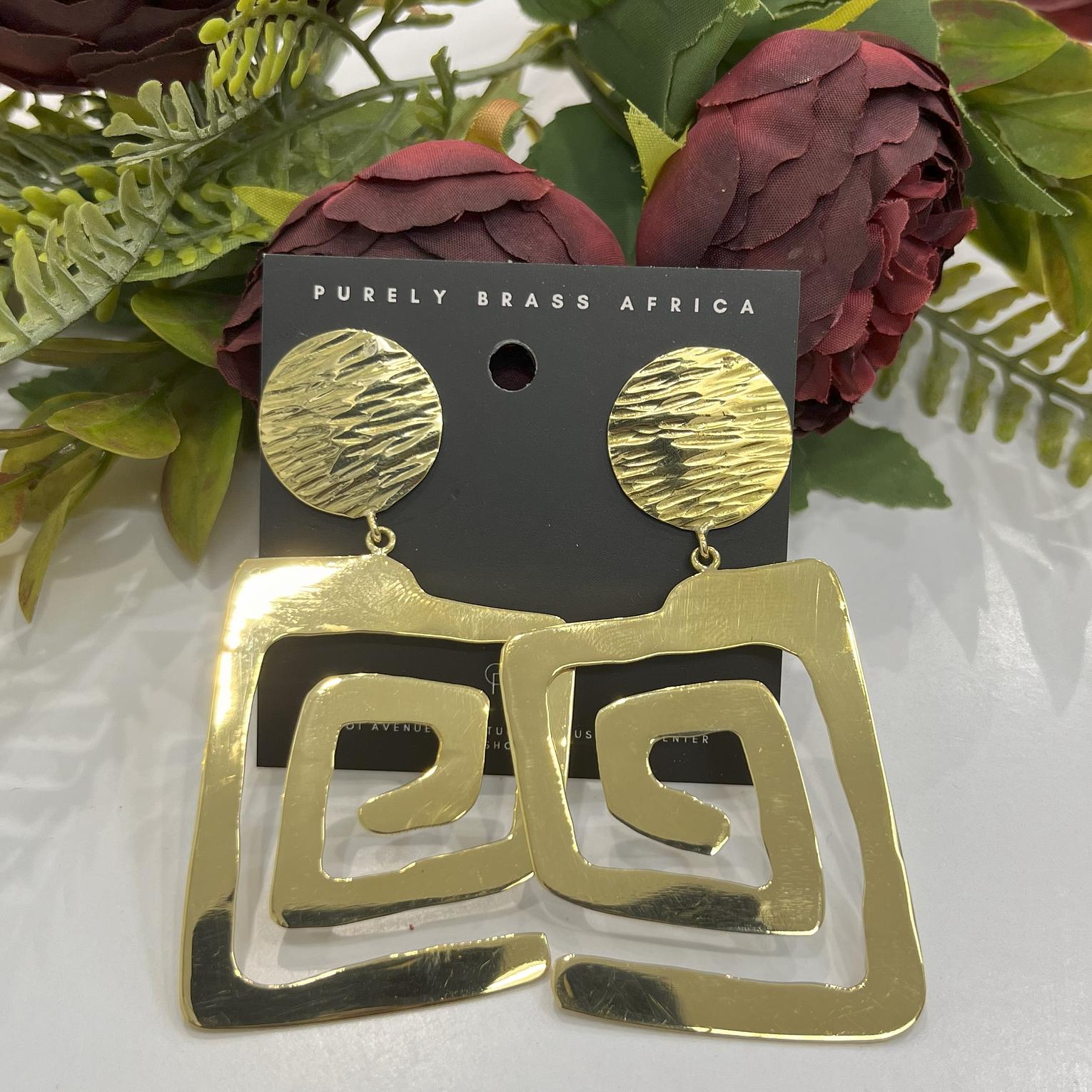 'Nia' is a stunning pair of earrings made from gold-plated brass with an artisanal touch, embodying a geometric yet fluid aesthetic.