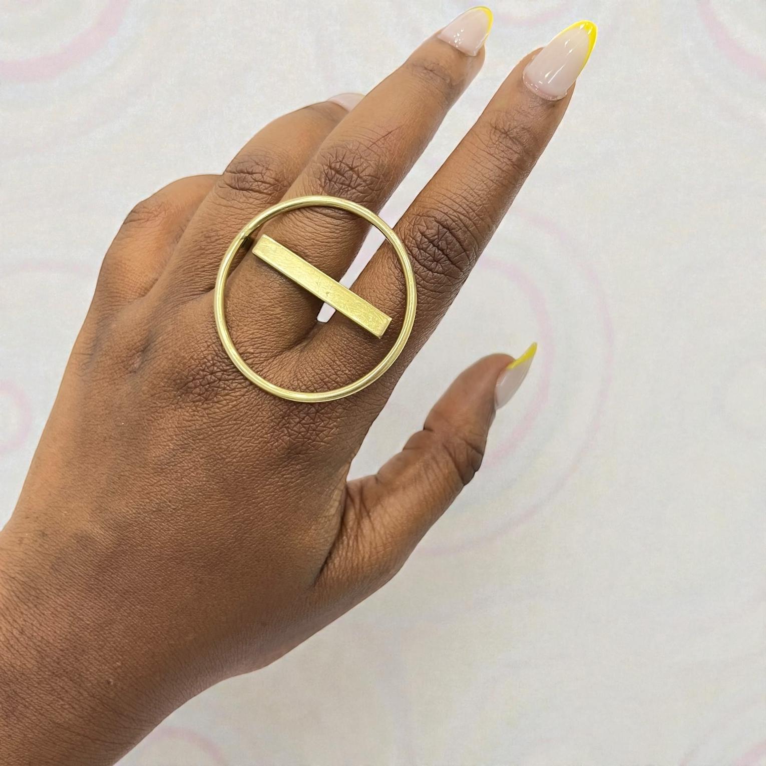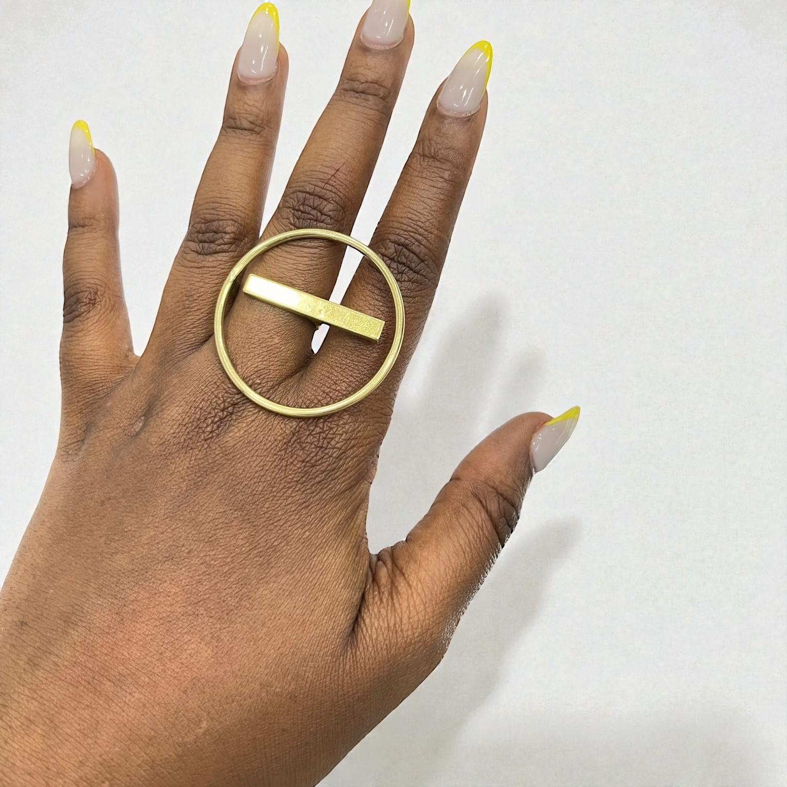 Open Circle brass ring with a gold bar.