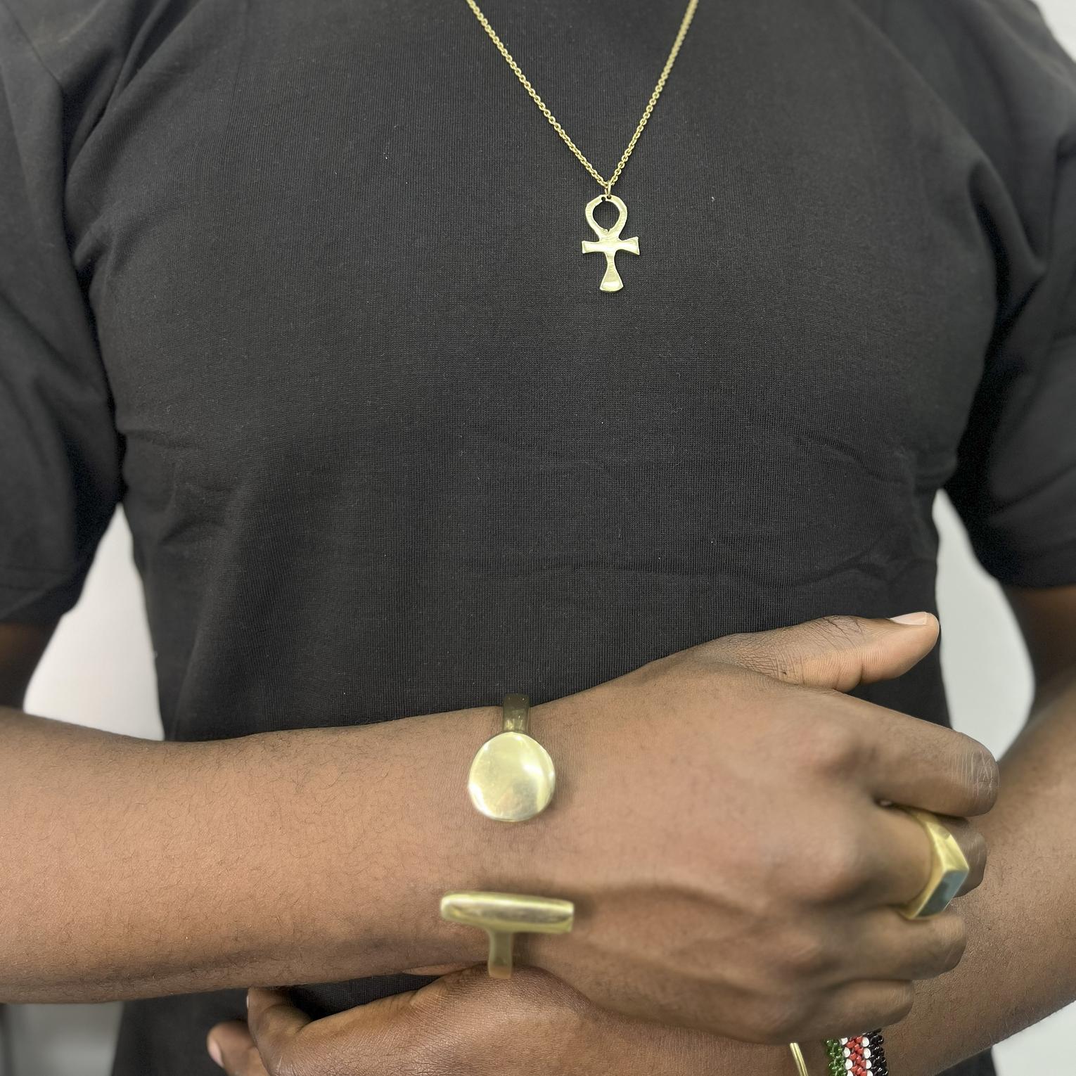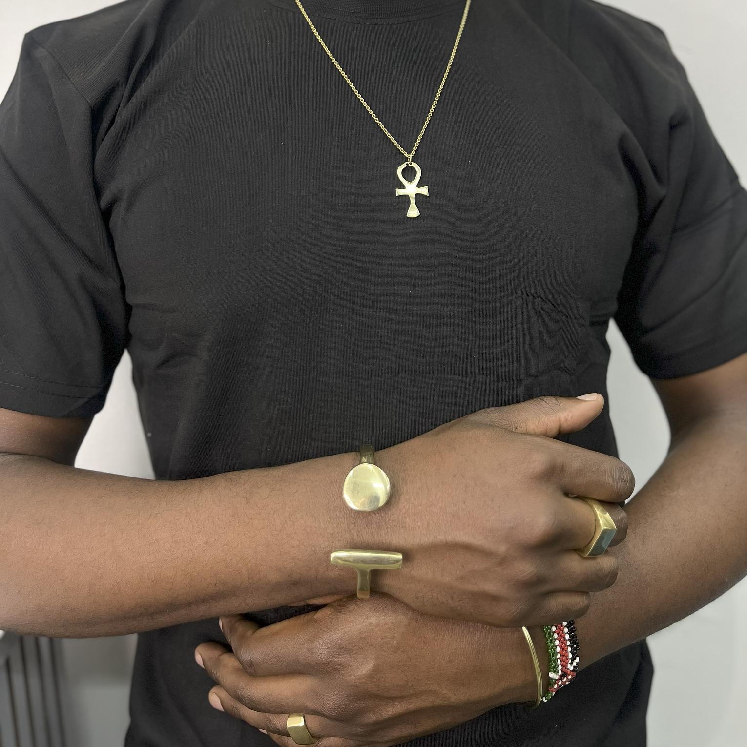 The Sekou Bracelet is made entirely of solid handcrafted brass, combining durability with style.