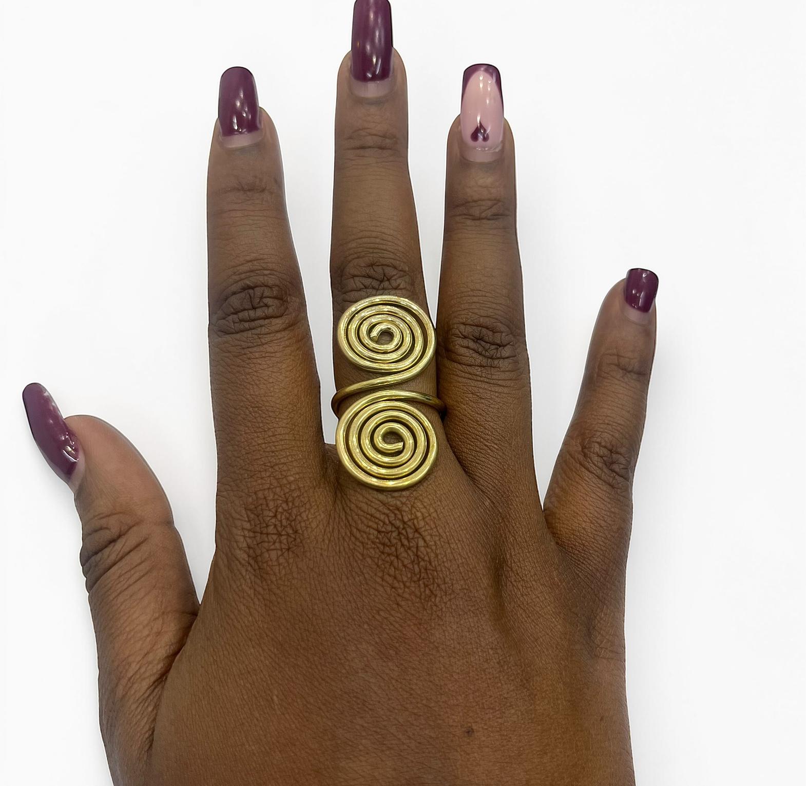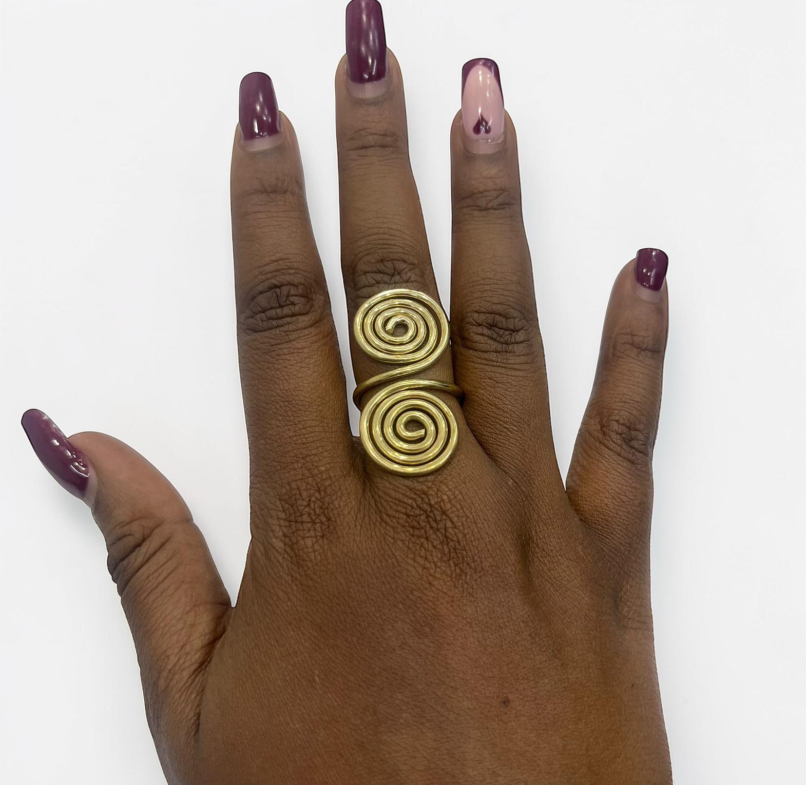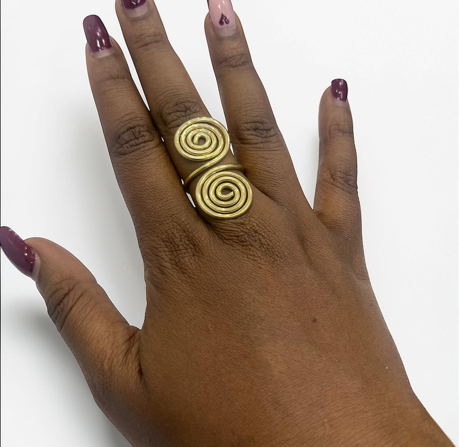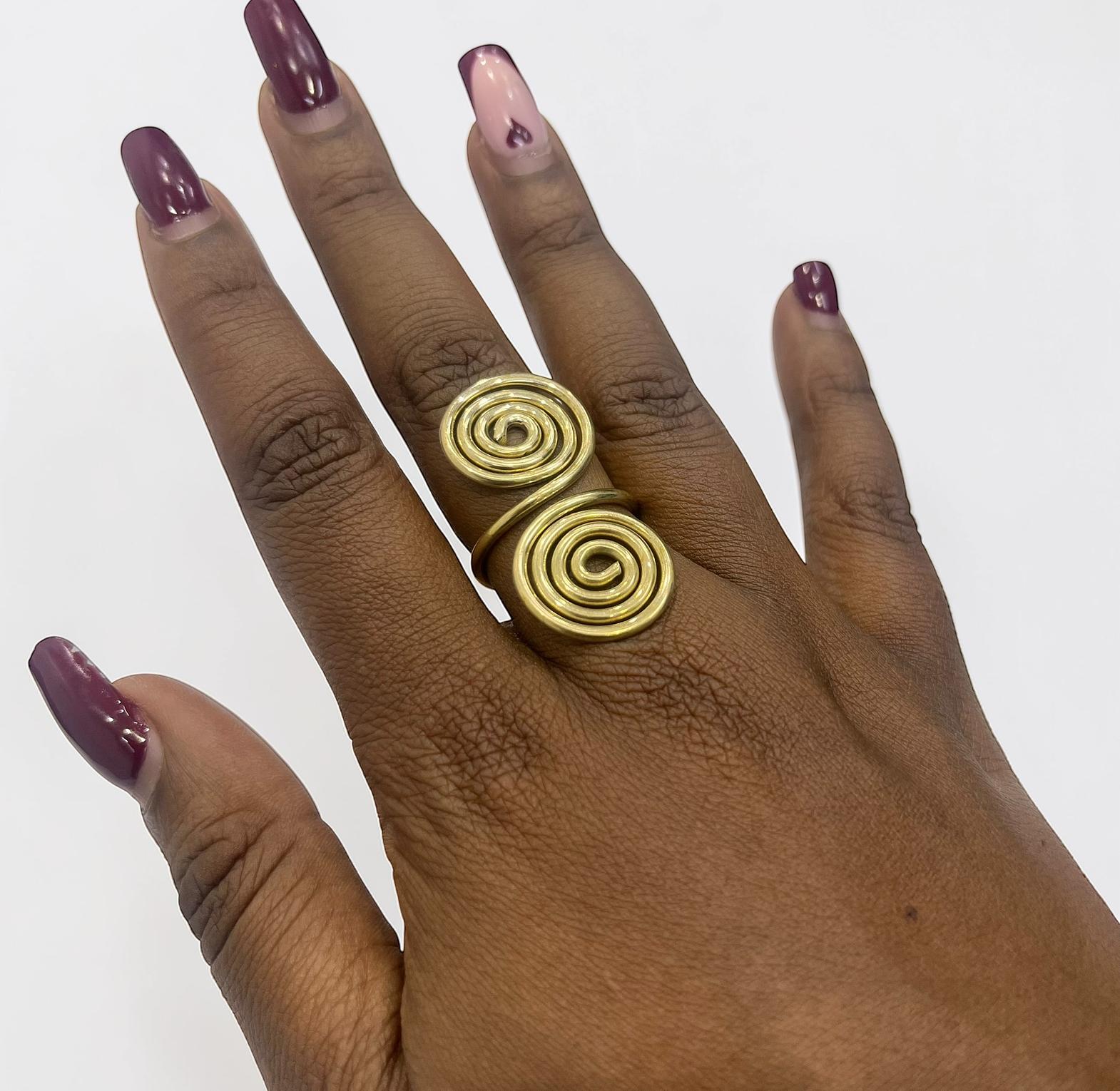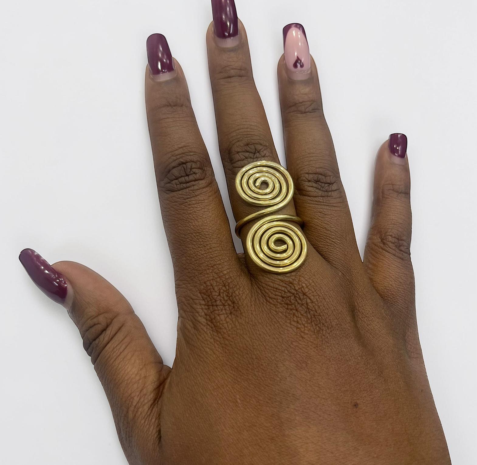 It is designed as an open adjustable ring,allowing for a comfortable fit on variours finger sizes.