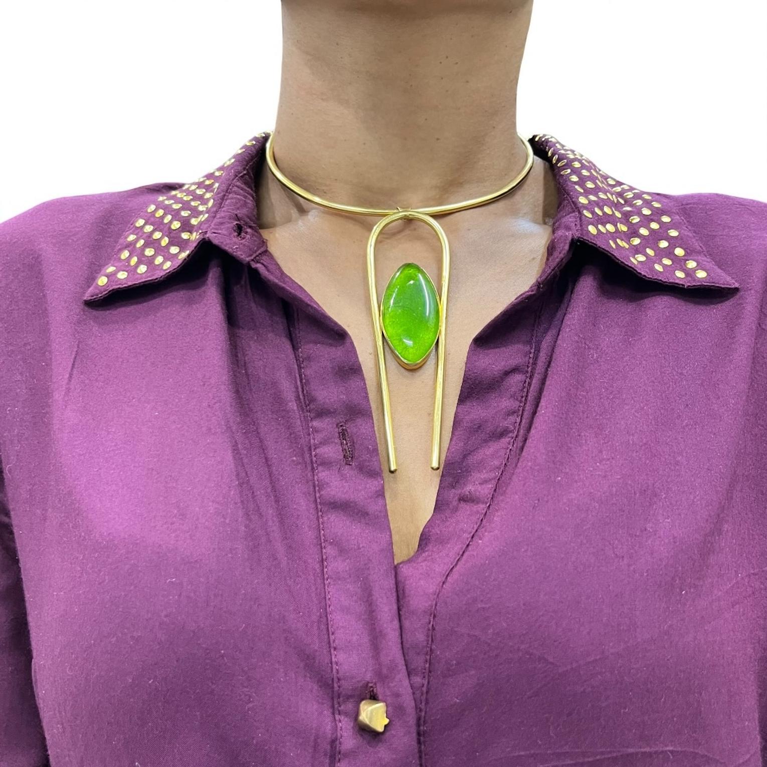 These stunning Stone brass choker are a perfect blend of simplicity and bold design,featuring a plain round brass band that wraps elegantly around the neck complimented by a colorful beaded pendant.