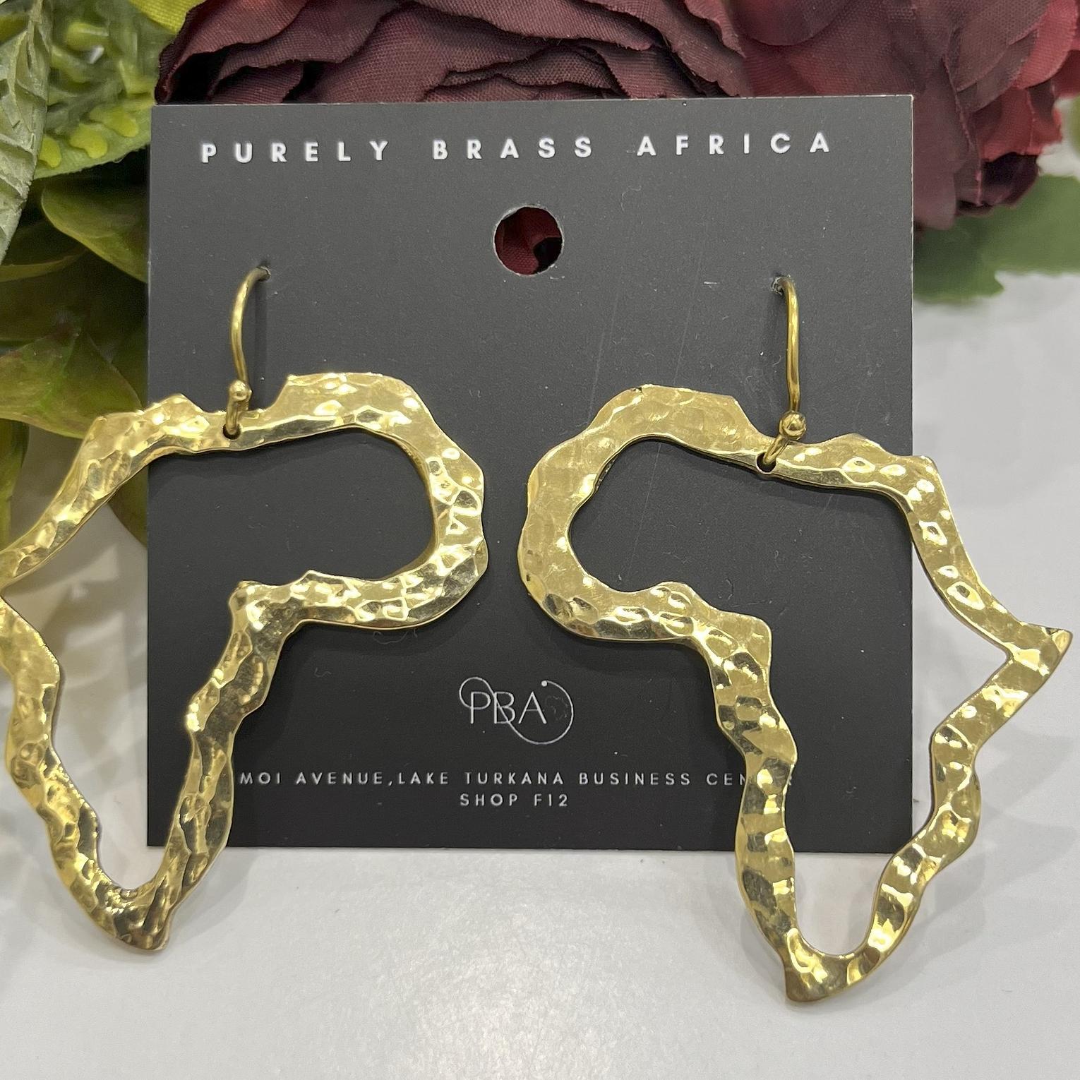 'Tiwonge' is a stunning pair of earrings made from polished golden brass, embodying a intricately detailed aesthetic
