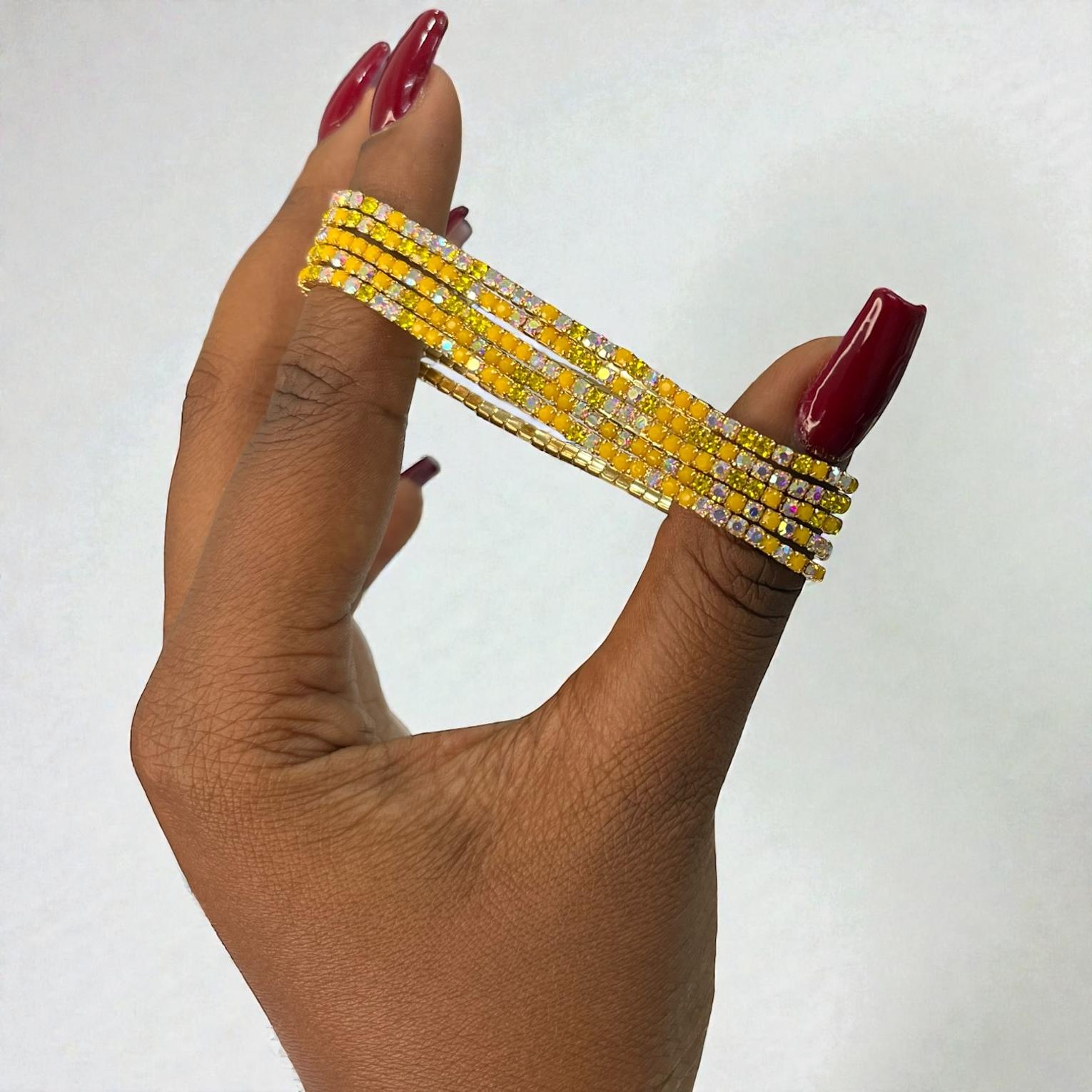 A tennis is a style of jewelry furaturing a contiious,symmetric line of gemstone-traditionally diamonds-connected by a thin flexible metal chain.