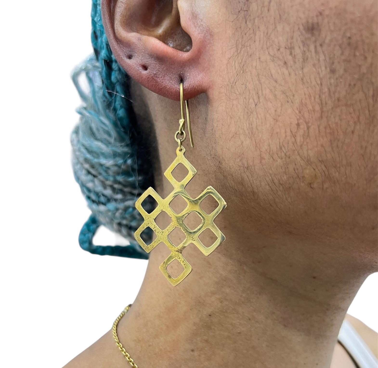 'Achieng' is a stunning pair of earrings made from raw textured brass, embodying a earthy and elemental aesthetic.