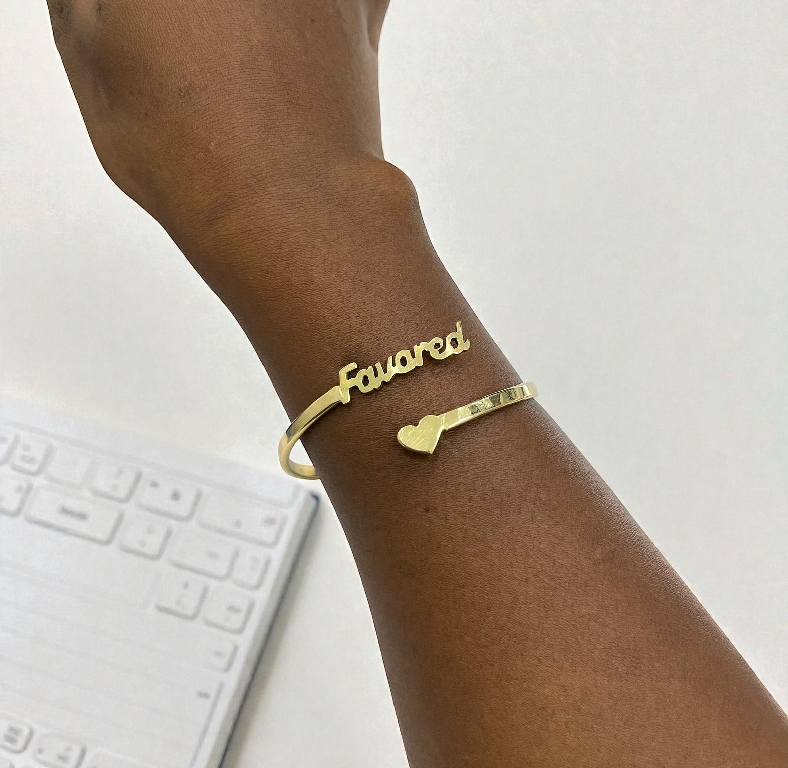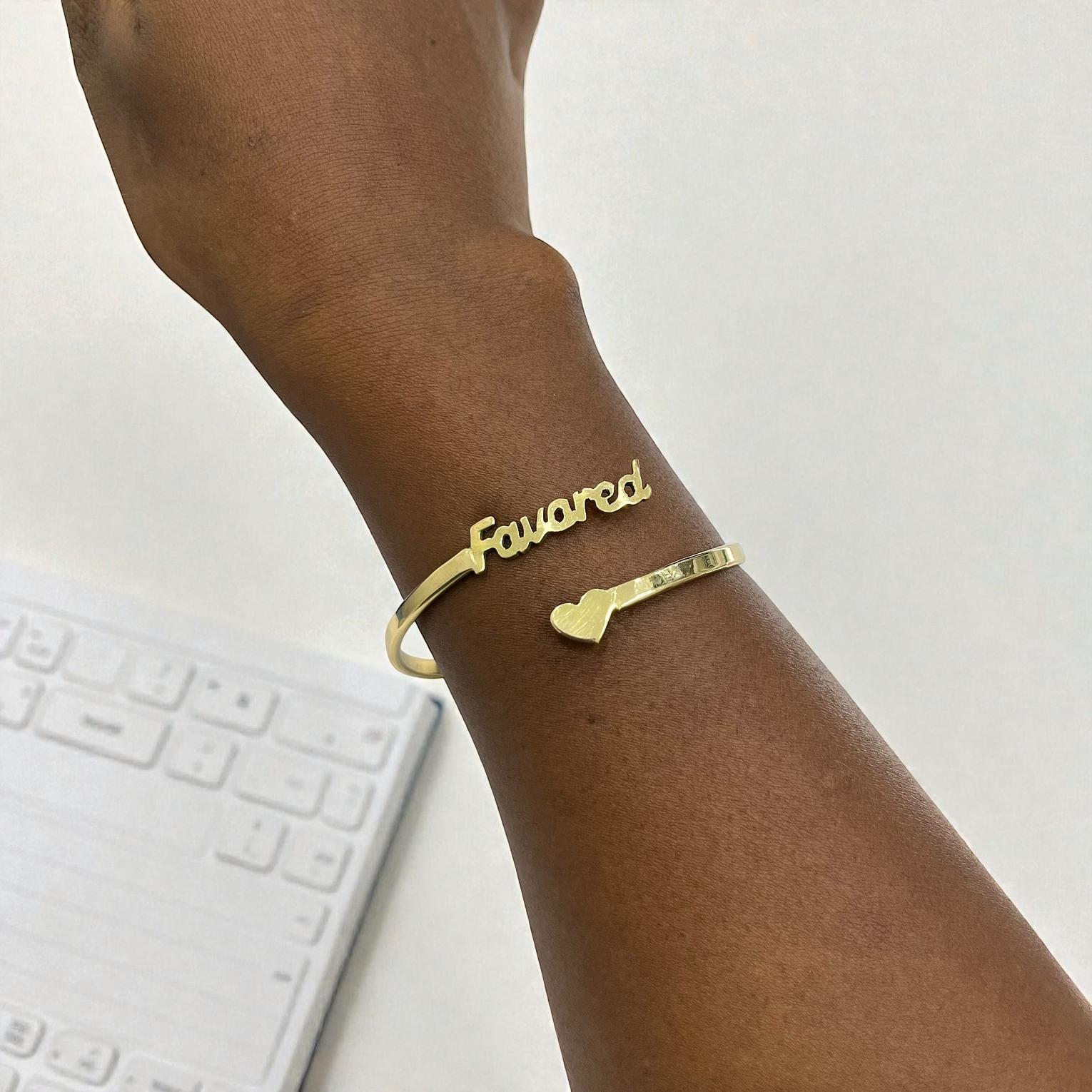 These bracelets feature positive words,symbols,or mantras,such as ''Fevored''in this case ,intended entended to encourage the wearer and promote positive thinking.