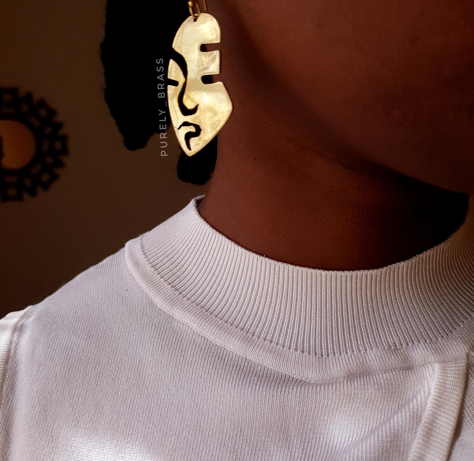 Bold and artistic, our African stylish drop brass earrings celebrate cultural heritage with a modern twist
