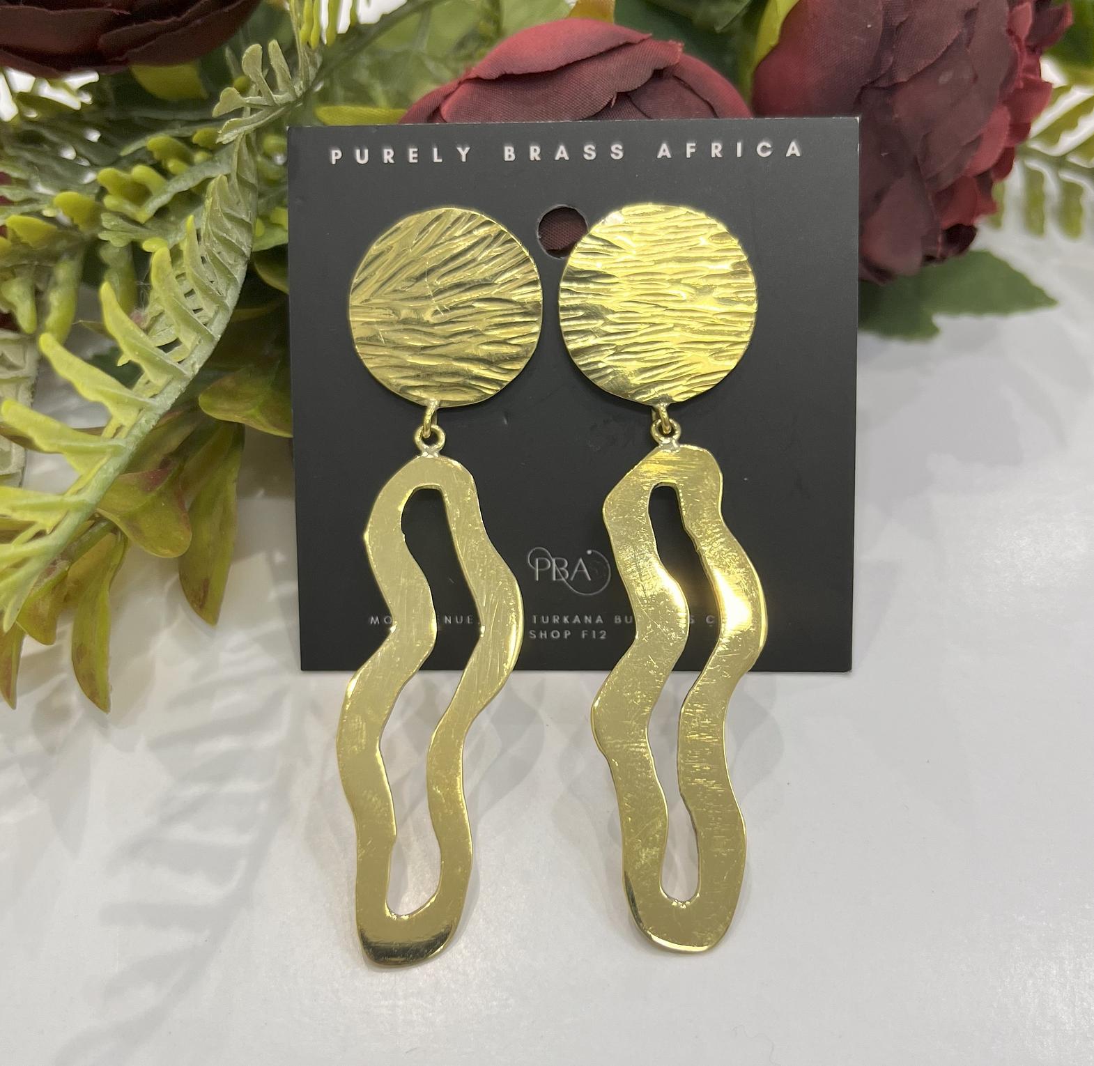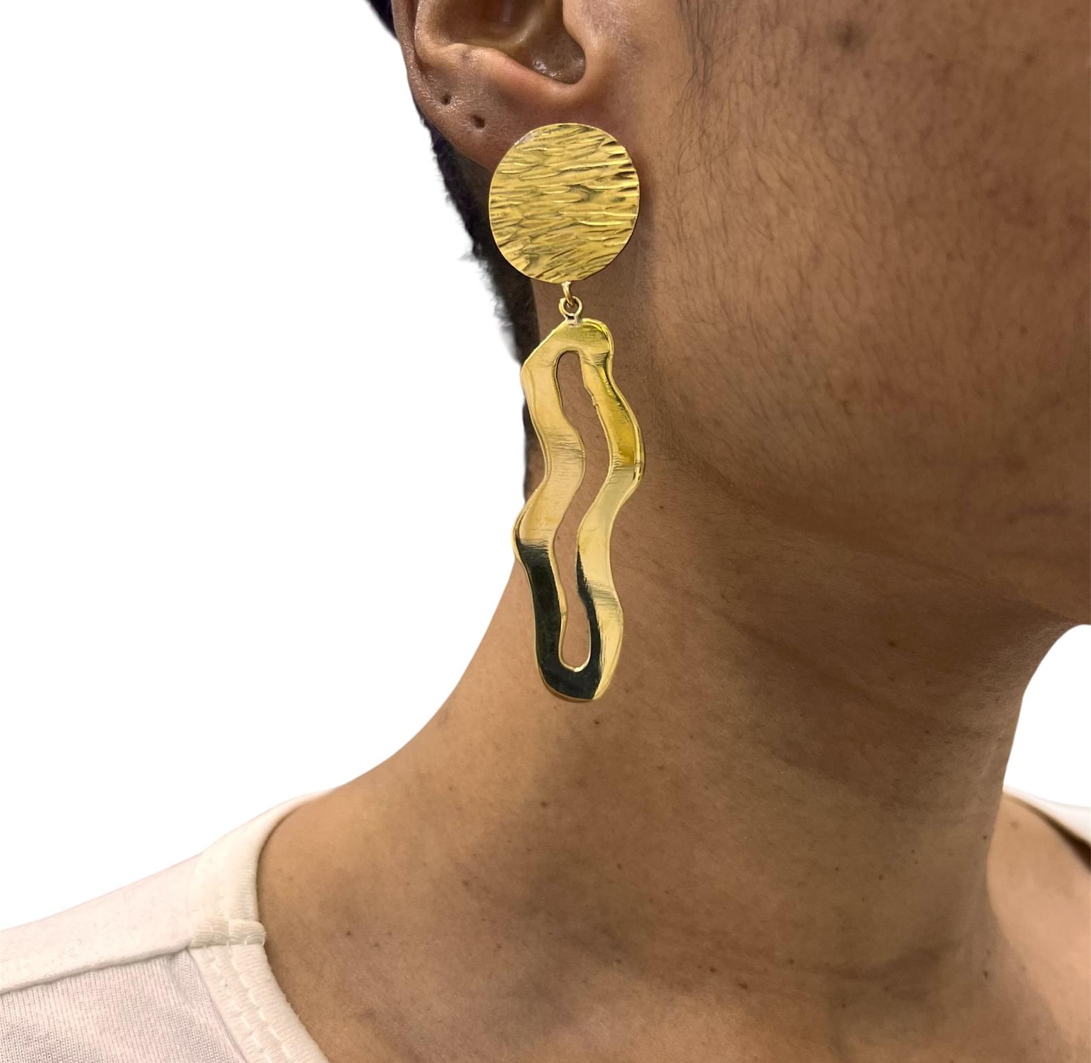 'Amahle' is a stunning pair of earrings made from polished golden brass, embodying a sculptural and organic aesthetic.
