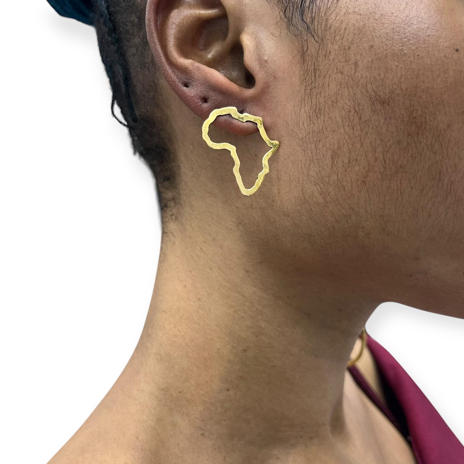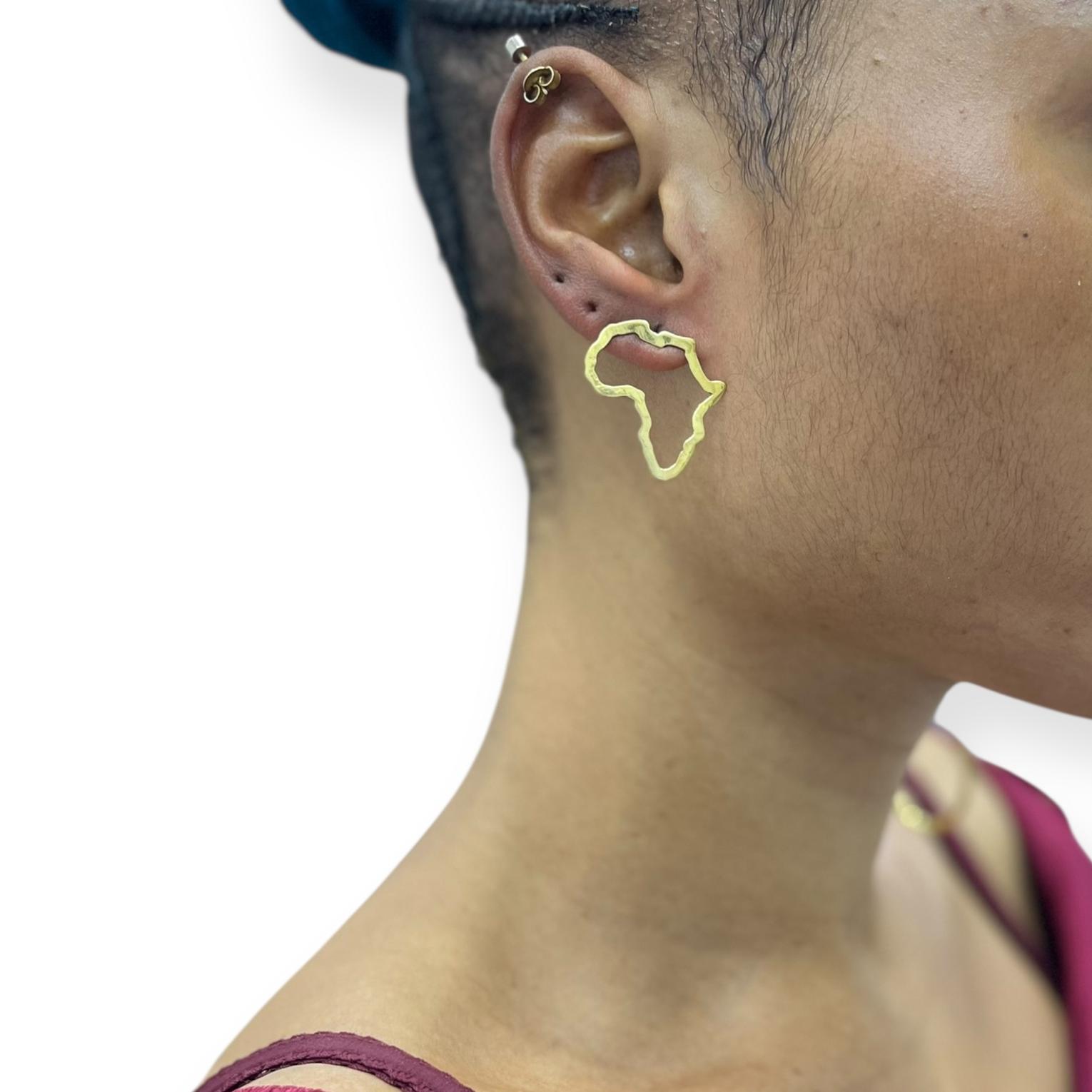 'Amina' is a stunning pair of earrings made from hand-hammered brass, embodying a bold and architectural aesthetic