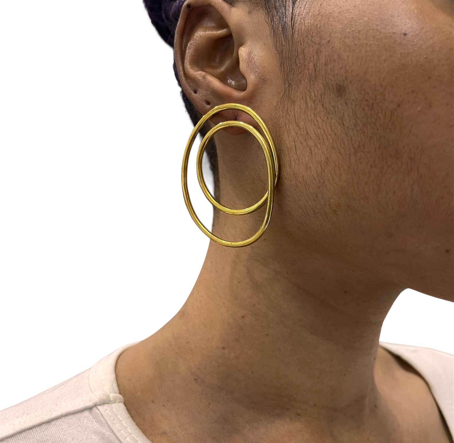 'Ahadi' is a stunning pair of earrings made from hand-hammered brass, embodying a bold and architectural aesthetic
