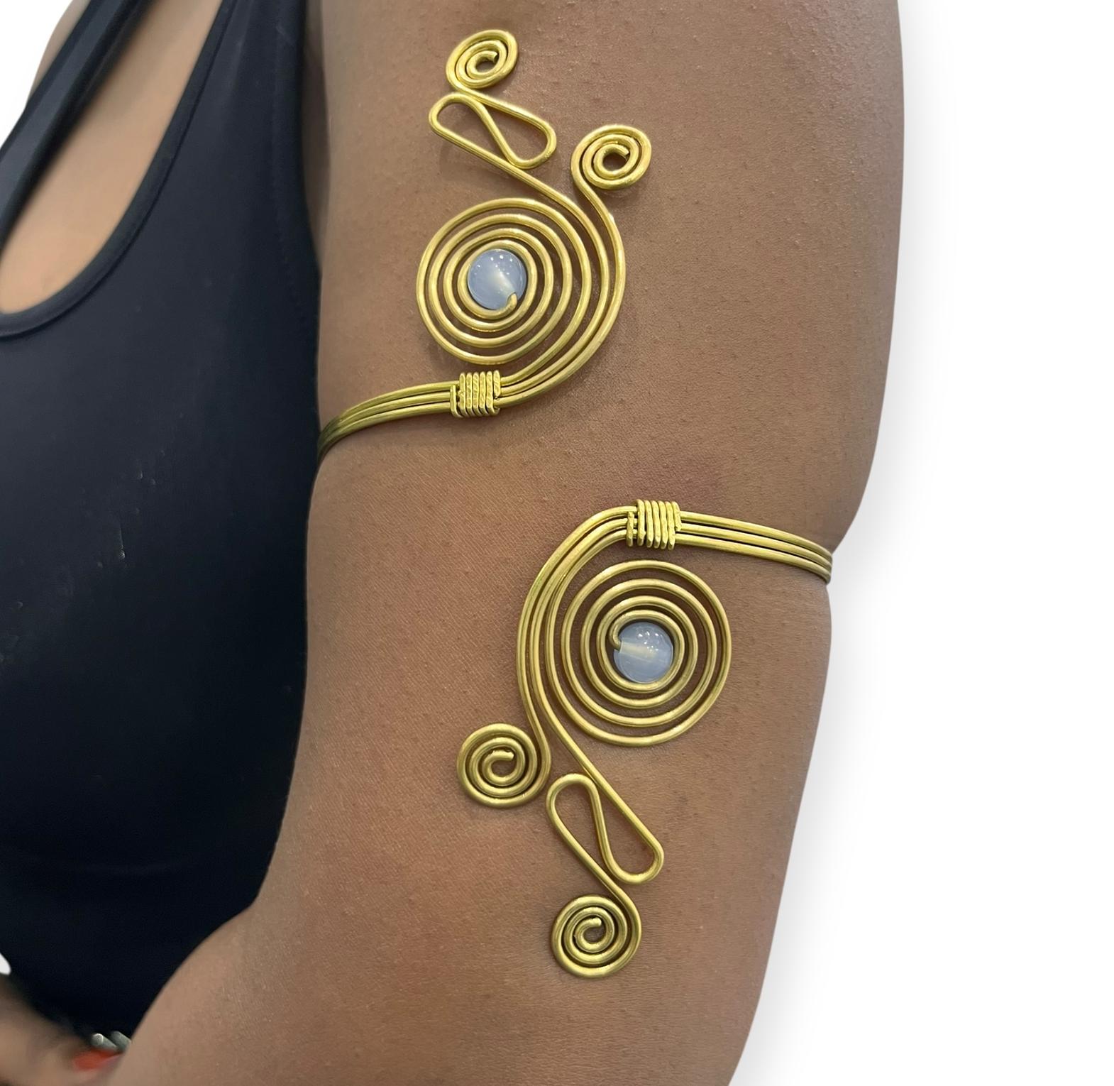 The Ayo Arm Cuff, meaning 'joy' in Yoruba, radiates positivity.