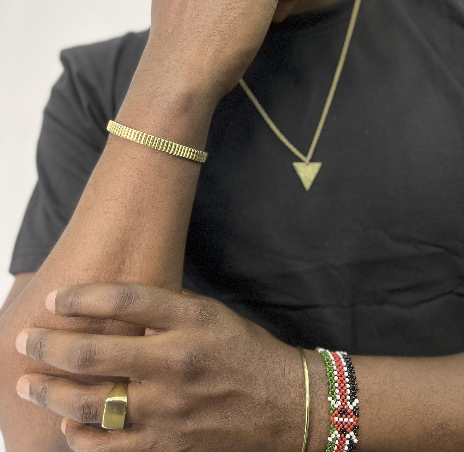 The Biko Bracelet is made entirely of solid handcrafted brass, combining durability with style.