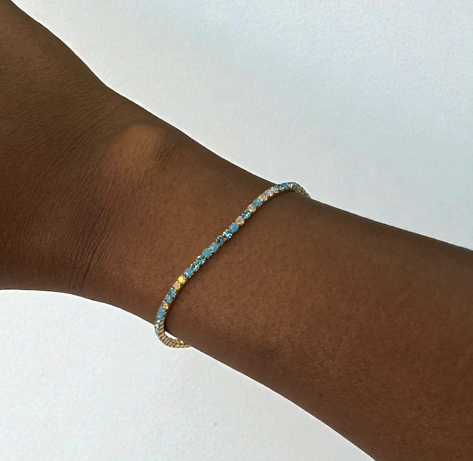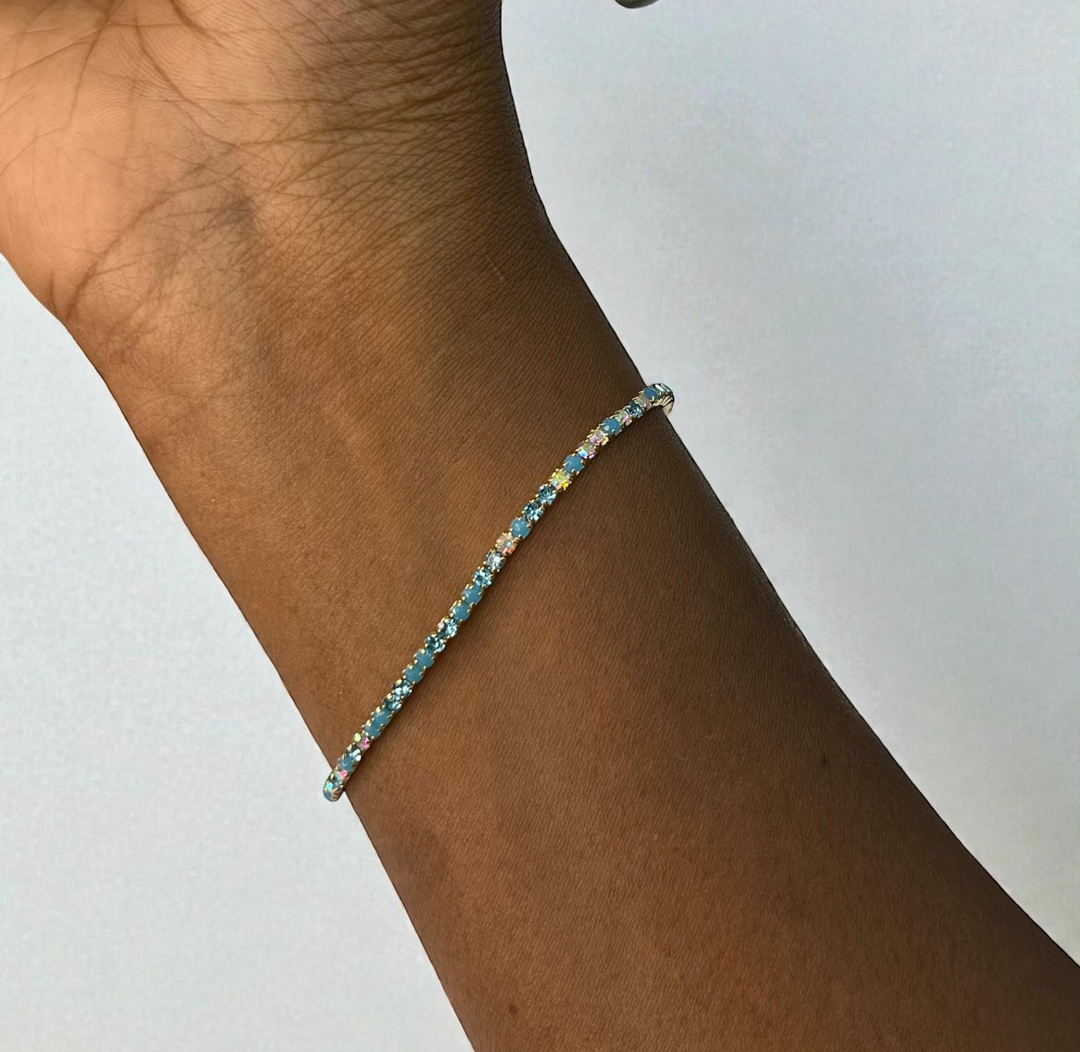 These are ''bejewelled''or ''strass''bracelets featuring multiple thin,elasstic strands.