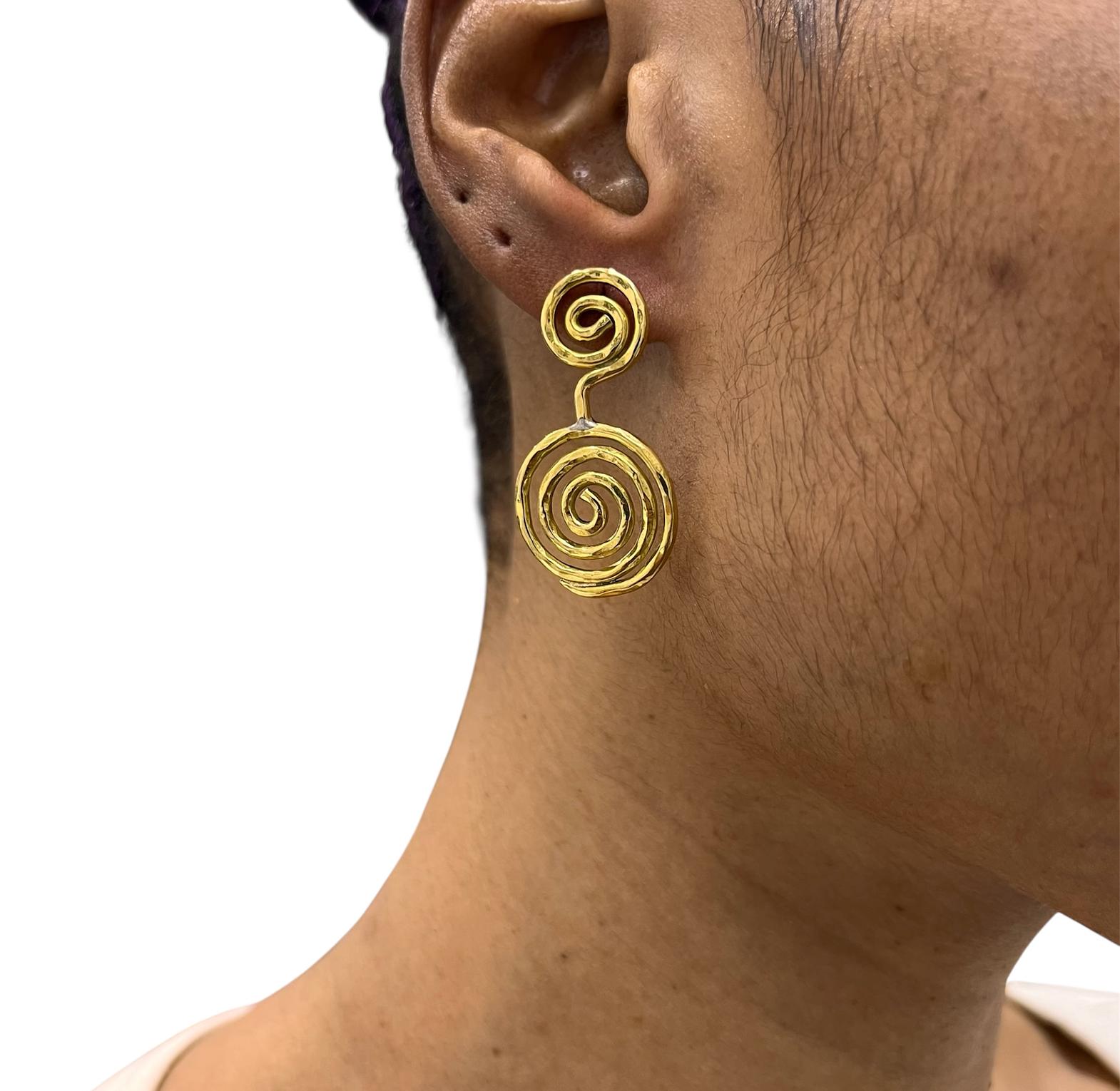 'Boitumelo' is a stunning pair of earrings made from hand-hammered brass, embodying a bold and architectural aesthetic