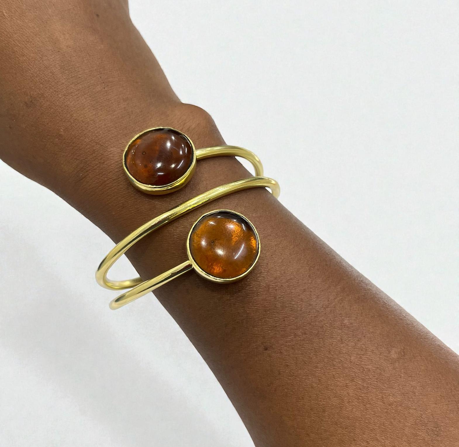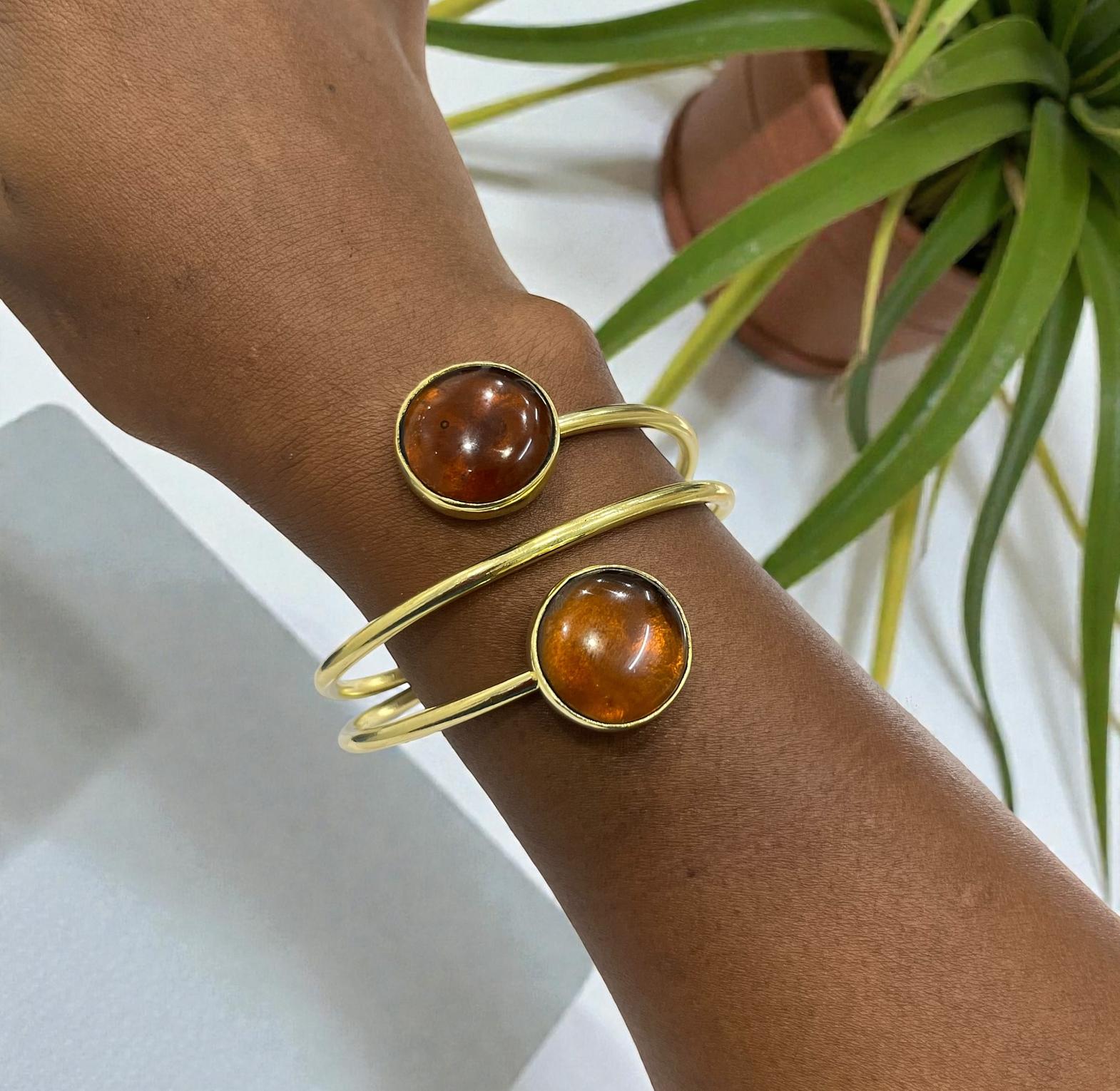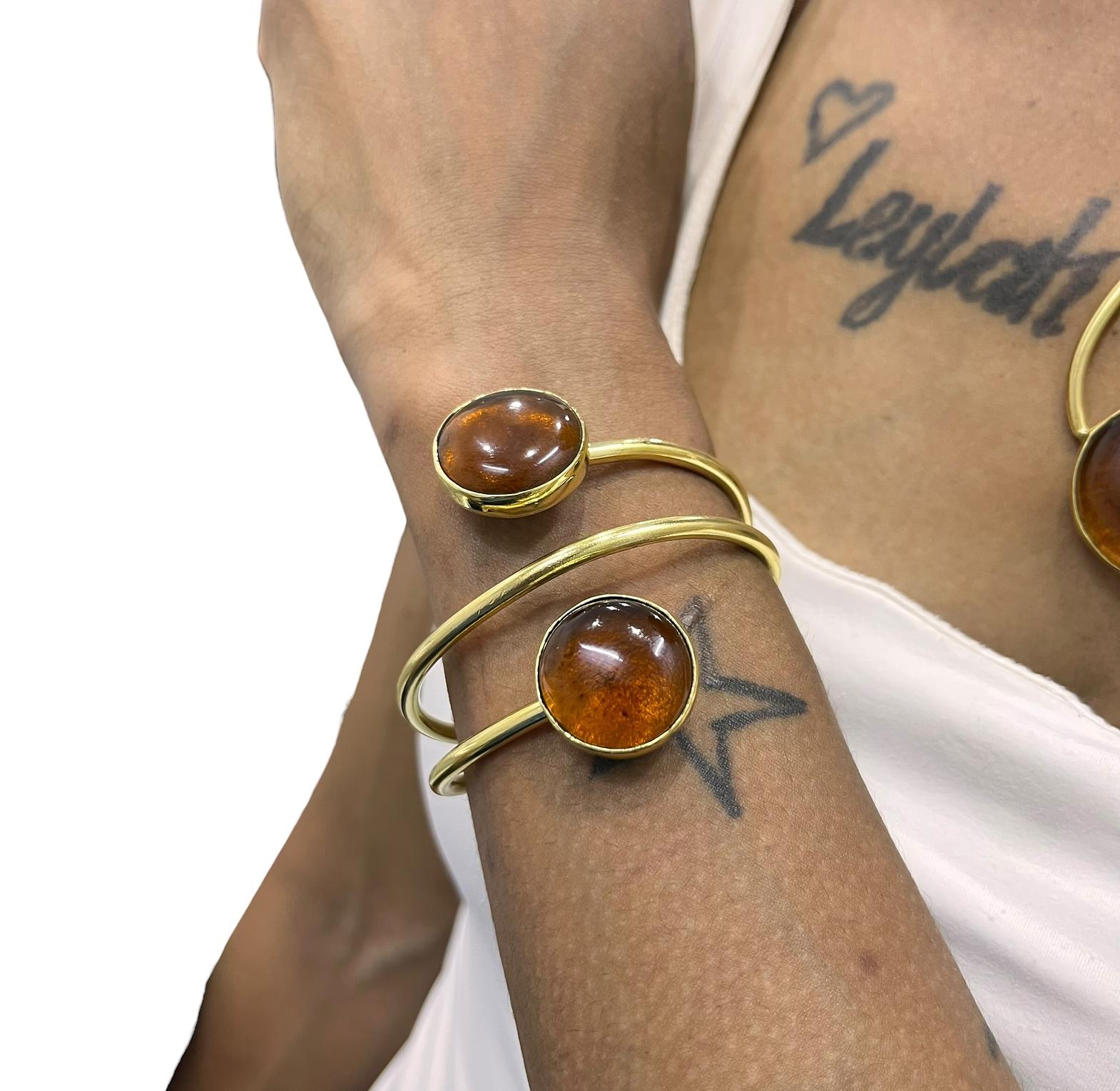 The cuff features a bold,open spiral design that allows it to wrap comfortably around the wrist.