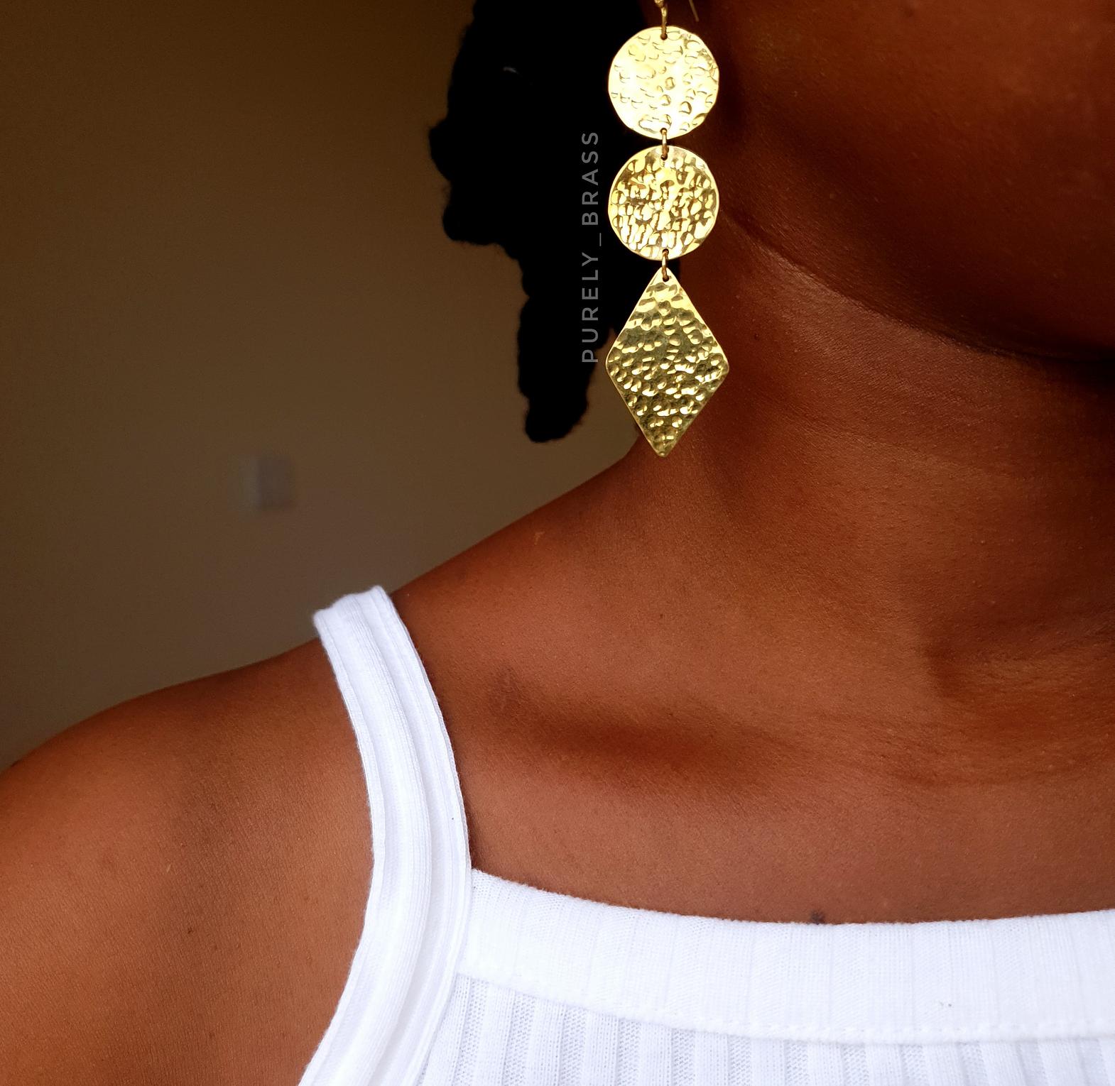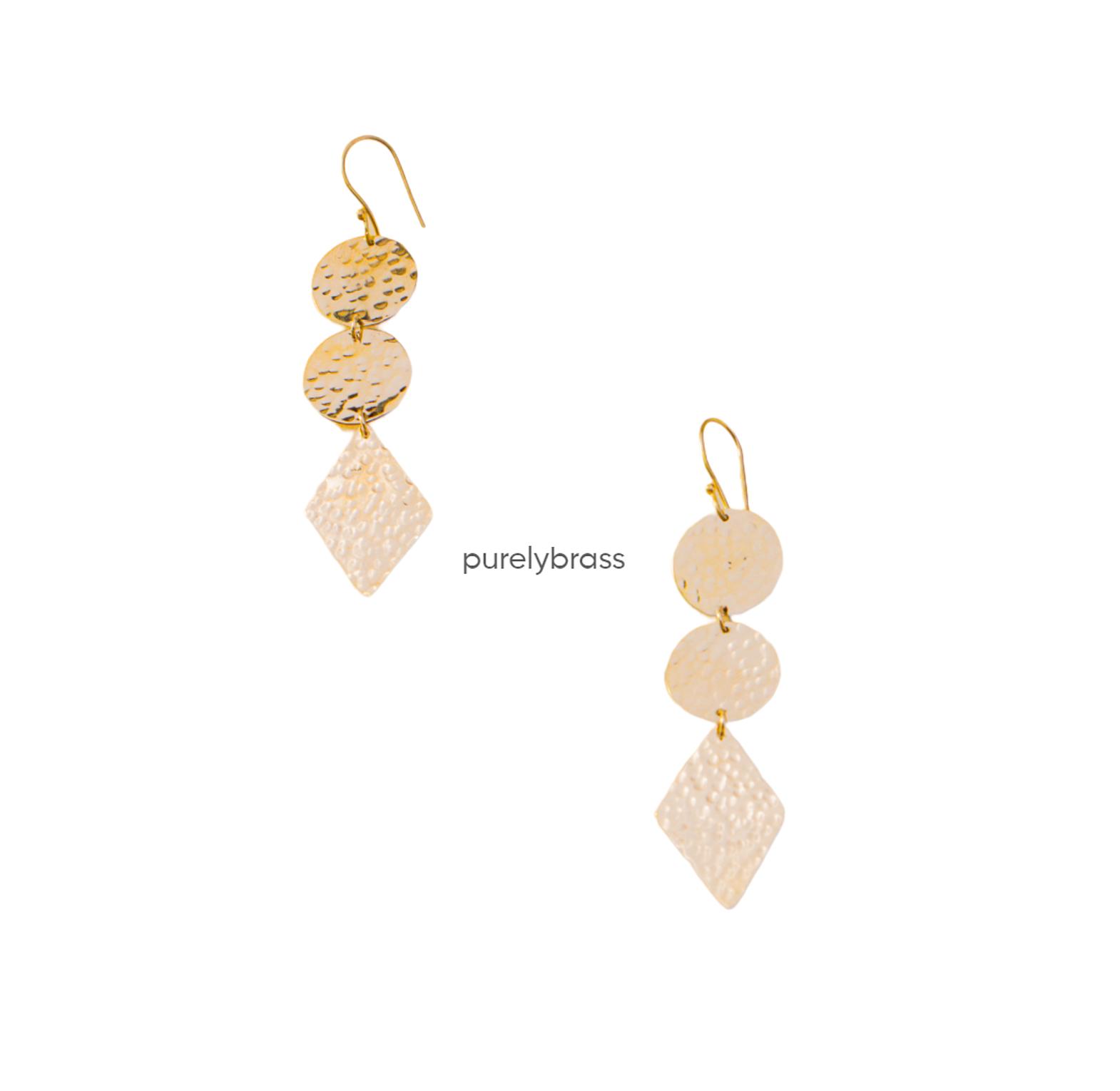 Elegant and sophisticated, our classy 1 diamond 2 circular-shaped dangled brass earrings are a stunning addition to any jewelry collection