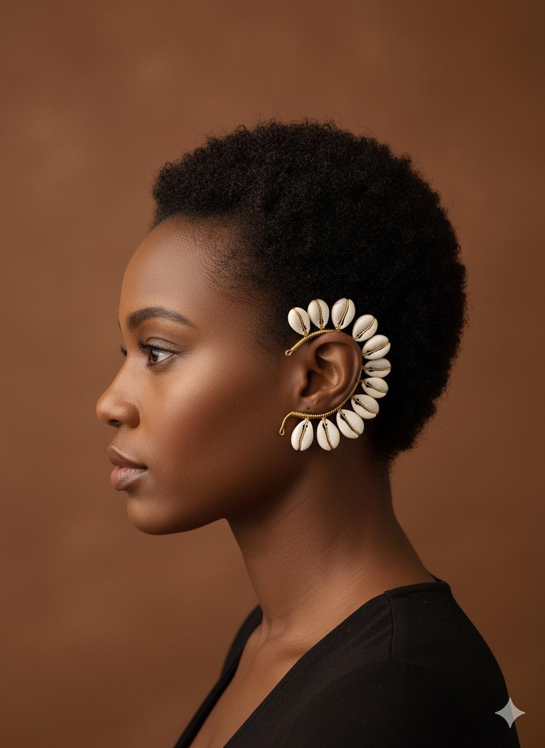 Cowrie Shell Earcuff ,a unique Afrocentric jewerly design handcrafted in Kenya.