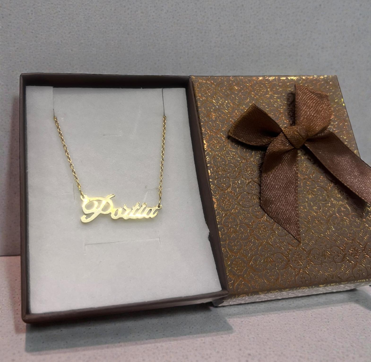 The necklace comes with a horizontal name pendant of your choice with up to 1o characters.