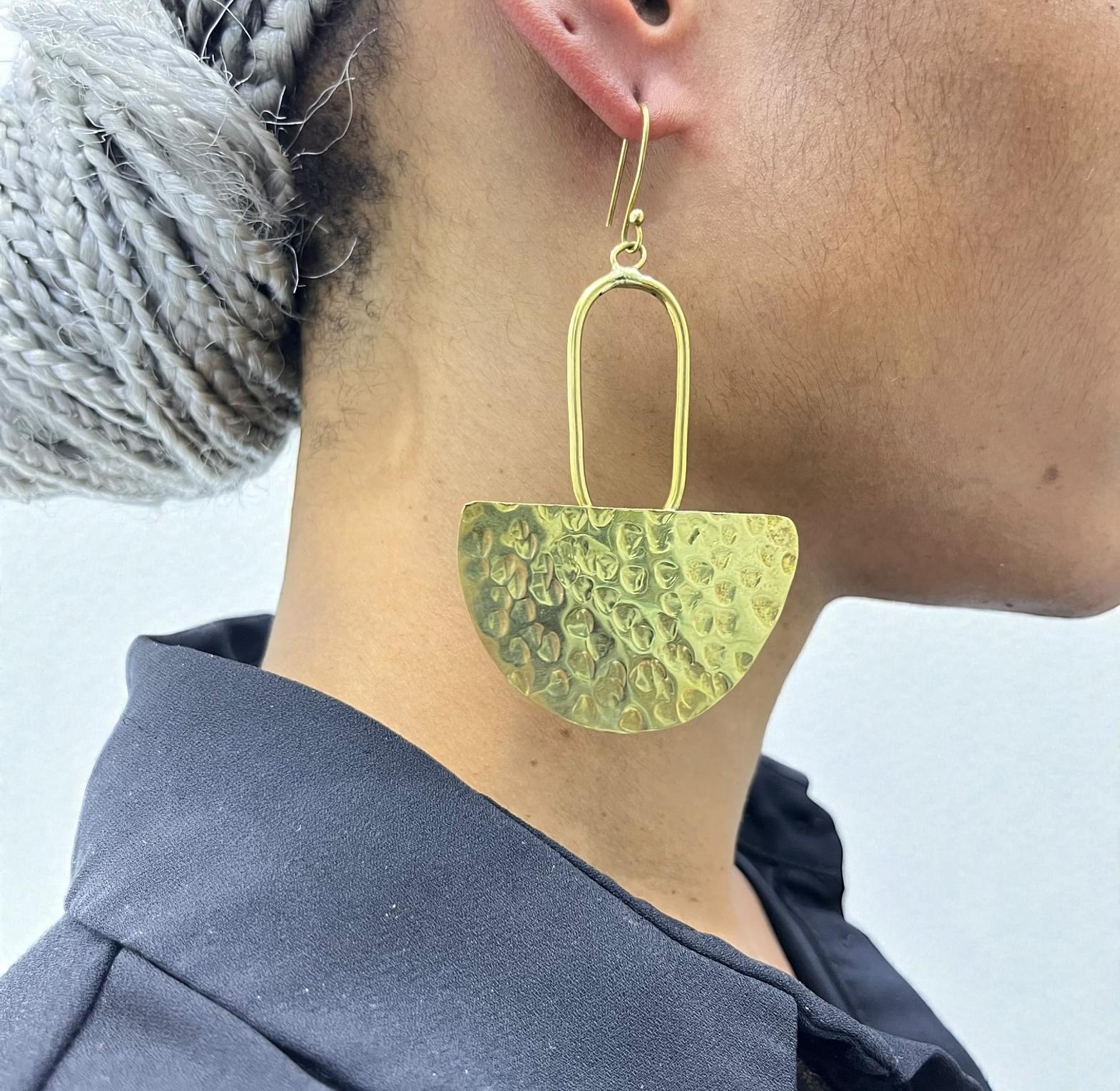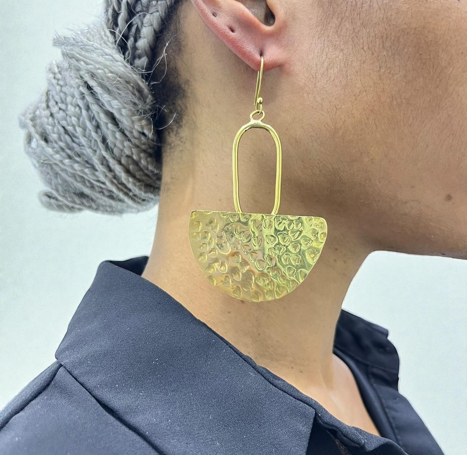 They are gold-toned fashion earrings featuring a hammered,semi-circular drop design.
