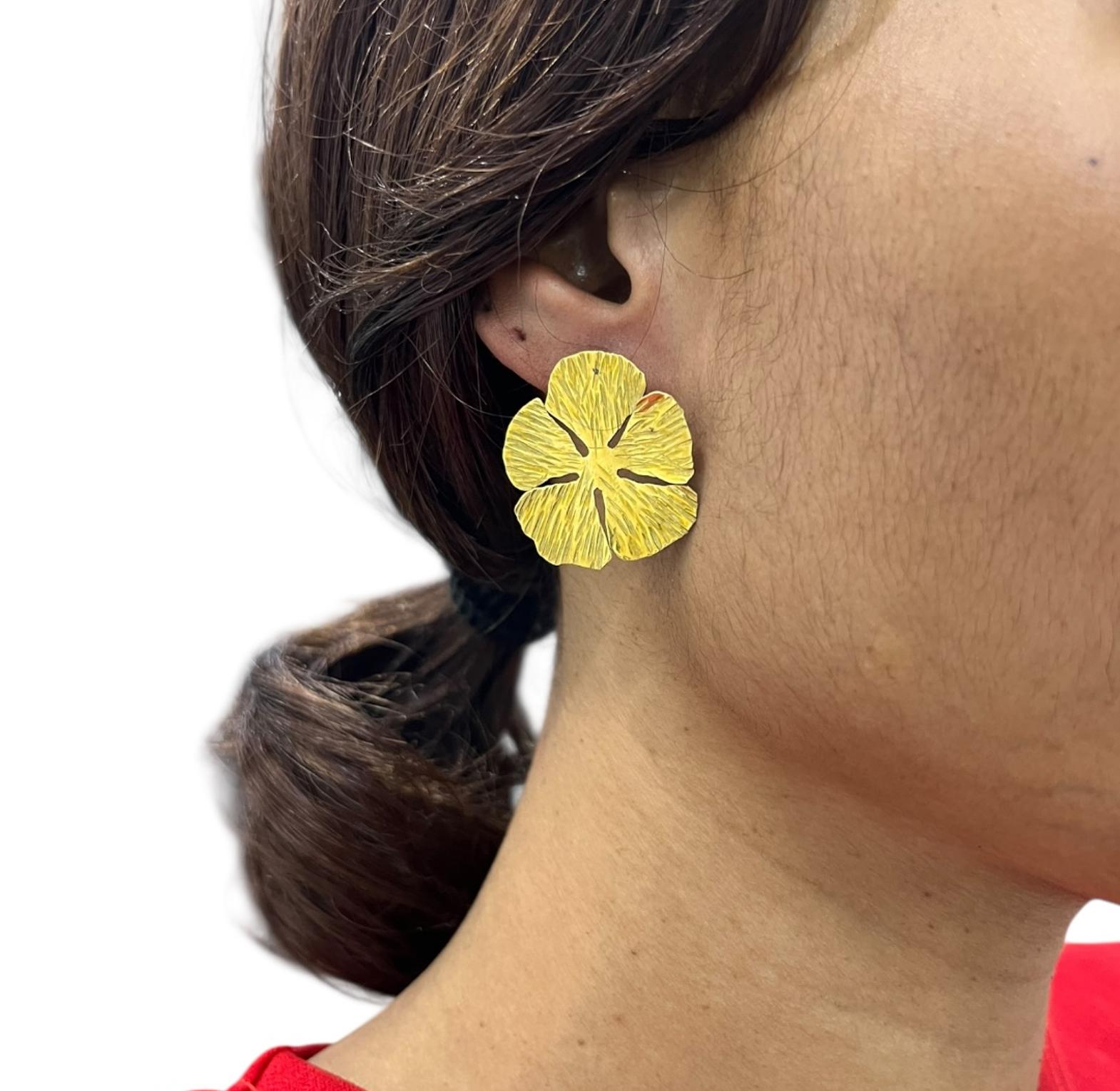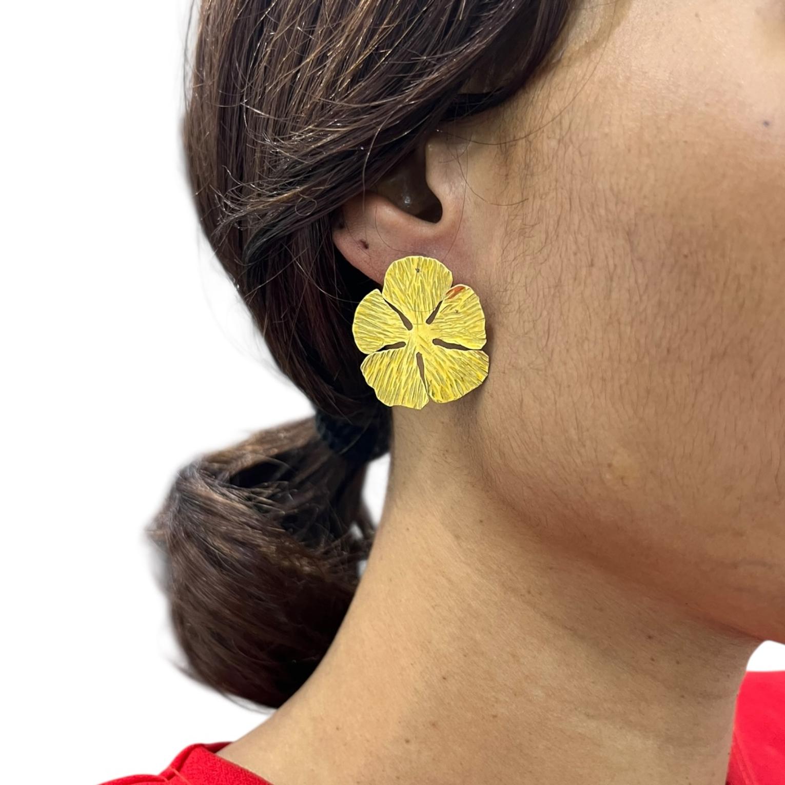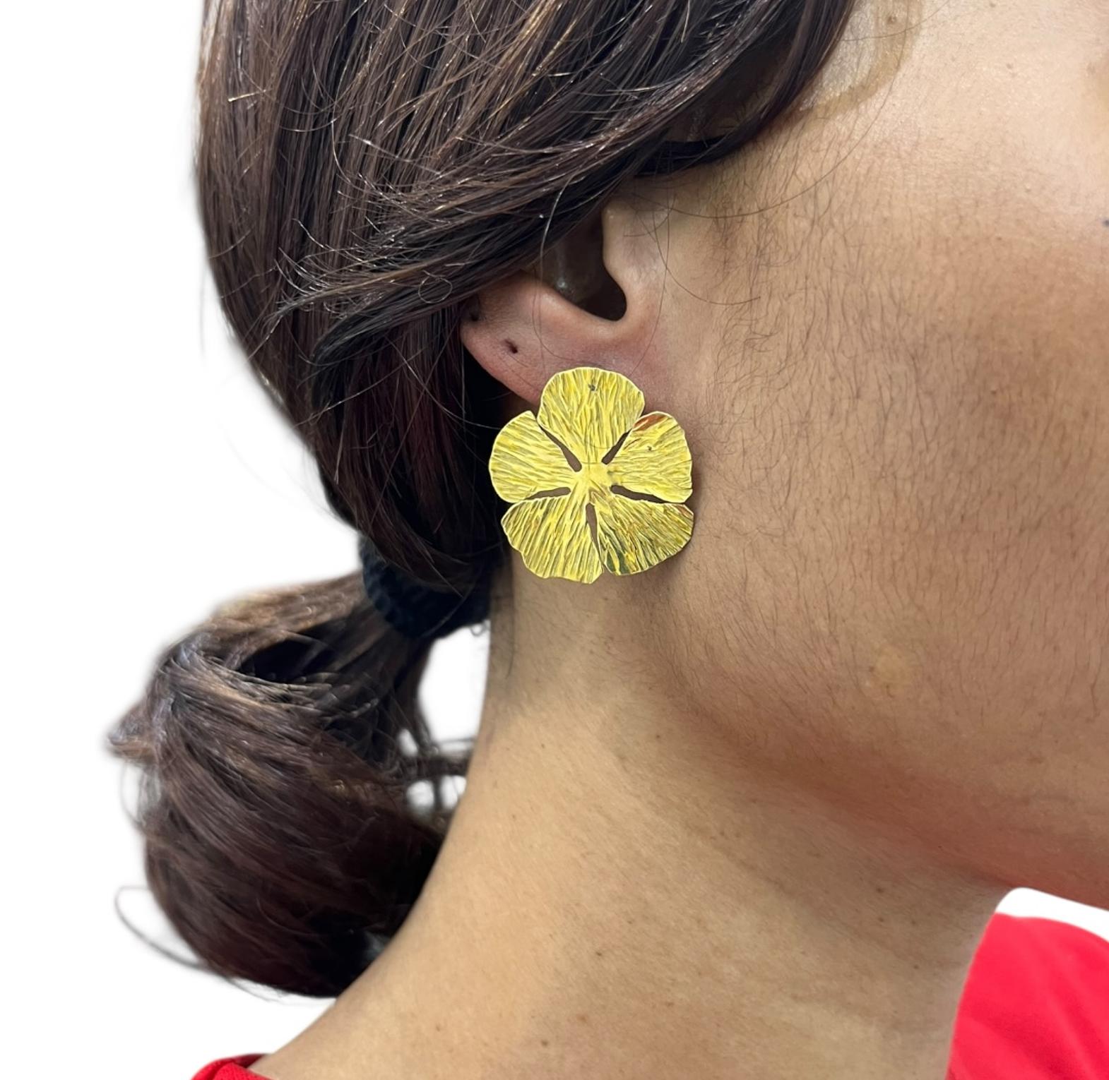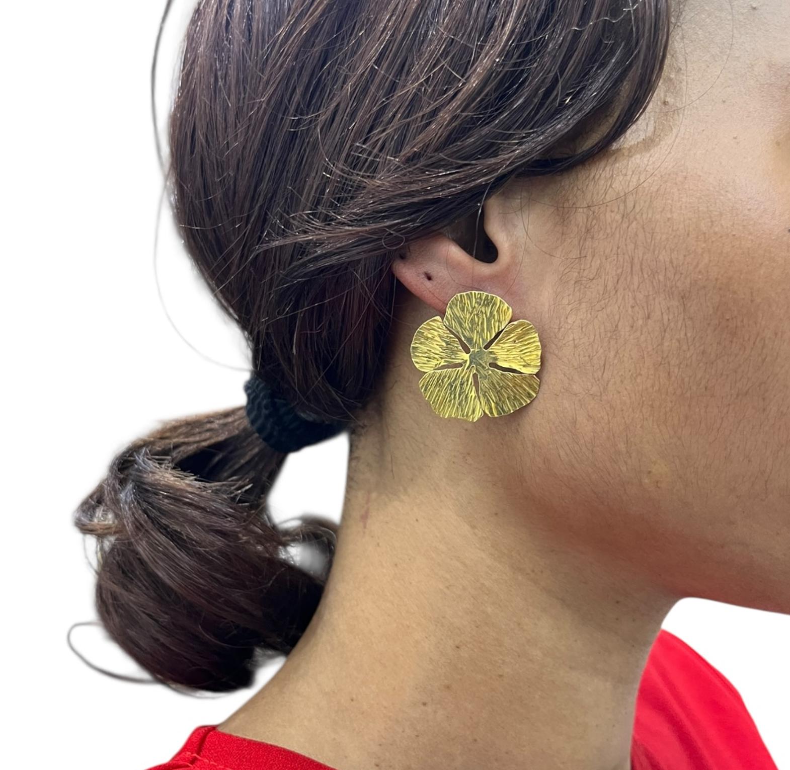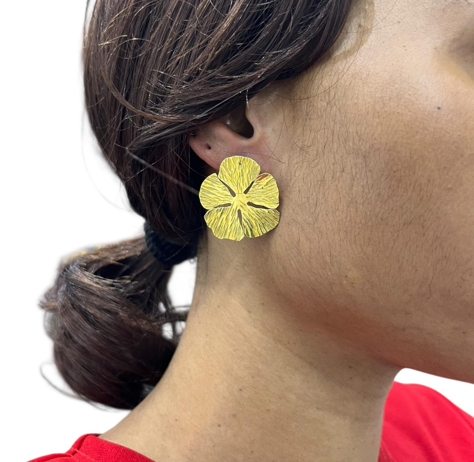 The earrings is a statement piece featuring a texured,abstract floral design.
