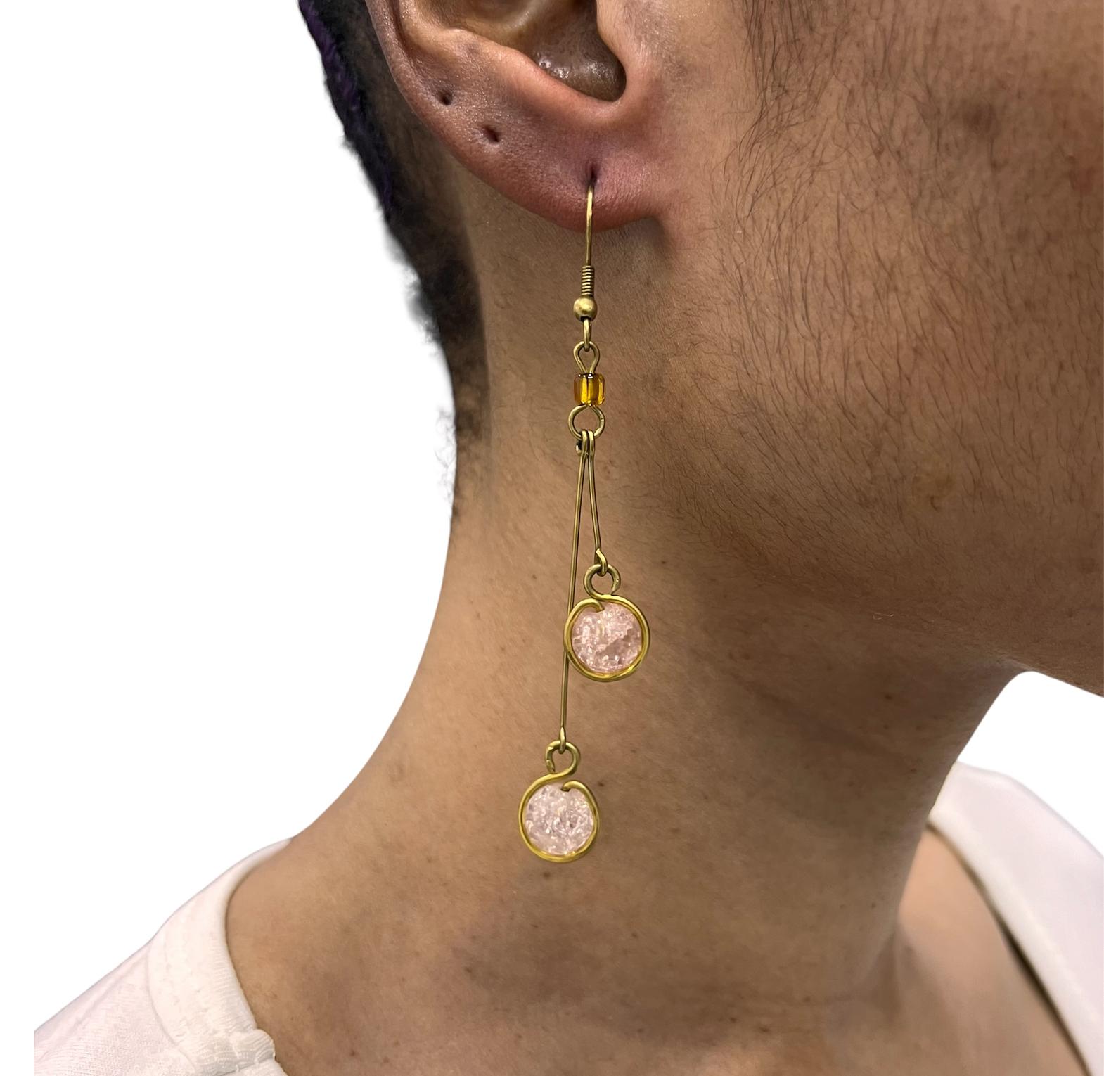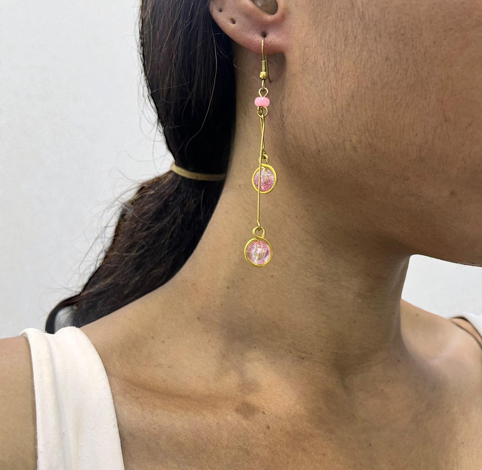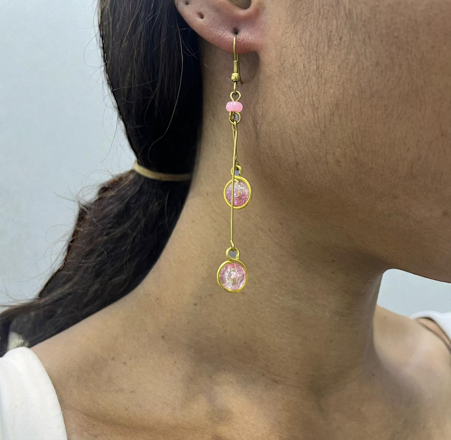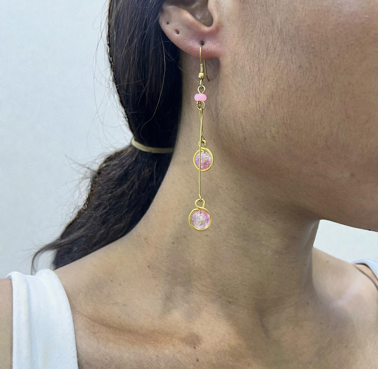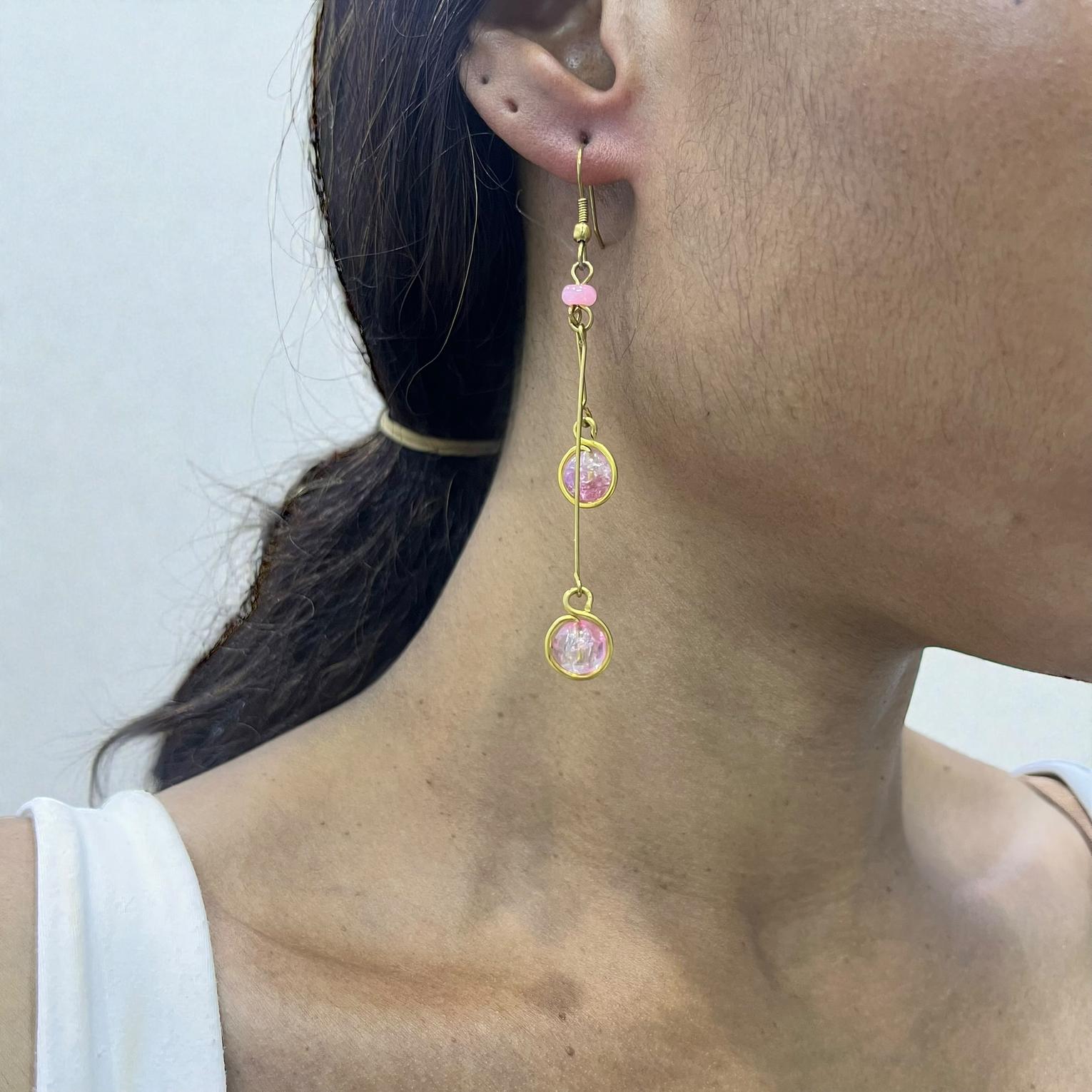 'Gugu' is a stunning pair of earrings made from gold-plated brass with an artisanal touch, embodying a intricately detailed aesthetic.