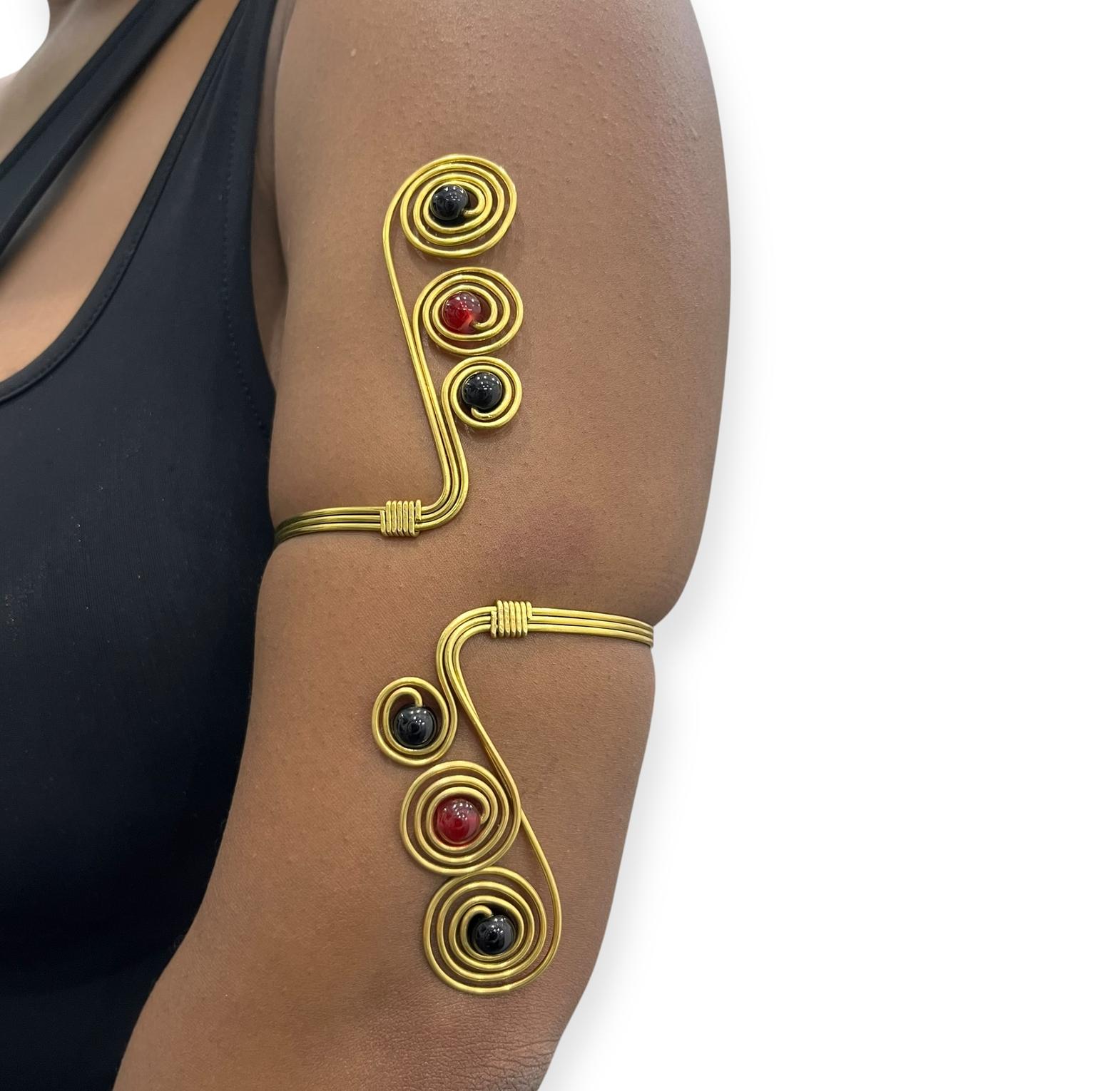 The Huru Arm Cuff, meaning 'freedom,' has an open, airy design that symbolizes independence and self-expression.