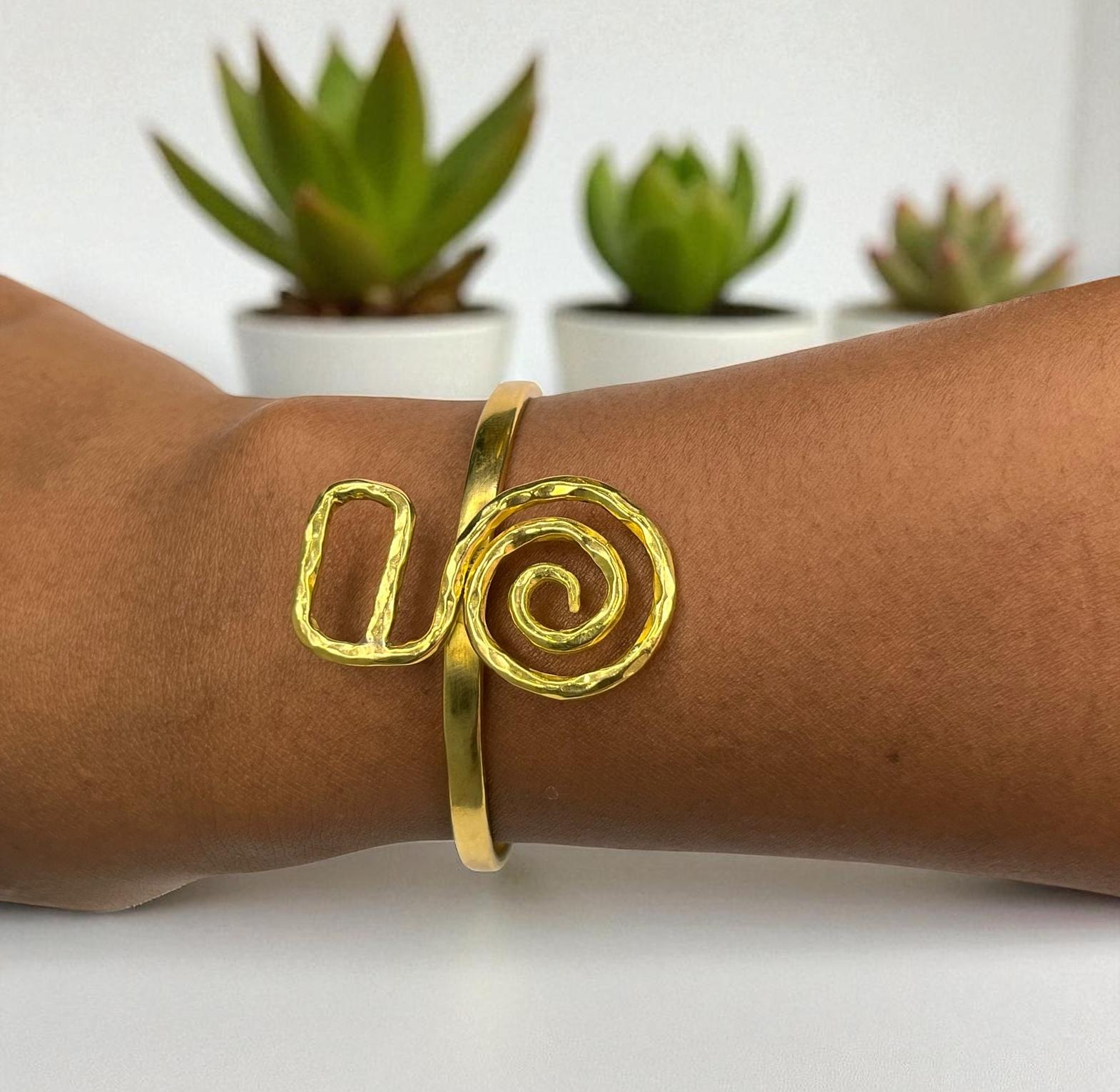 A brass bracelet inspired by Faith (Swahili).