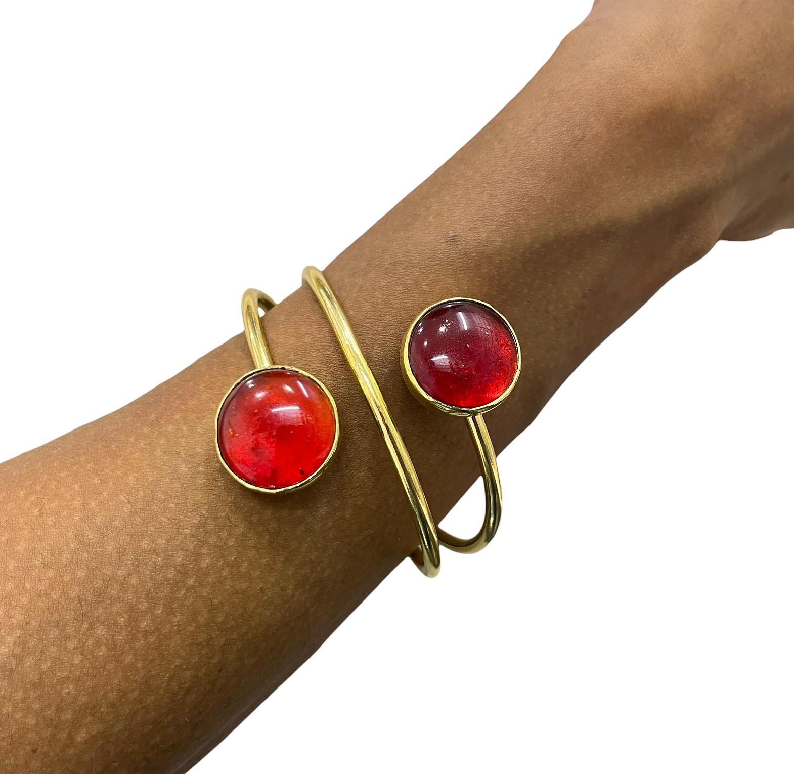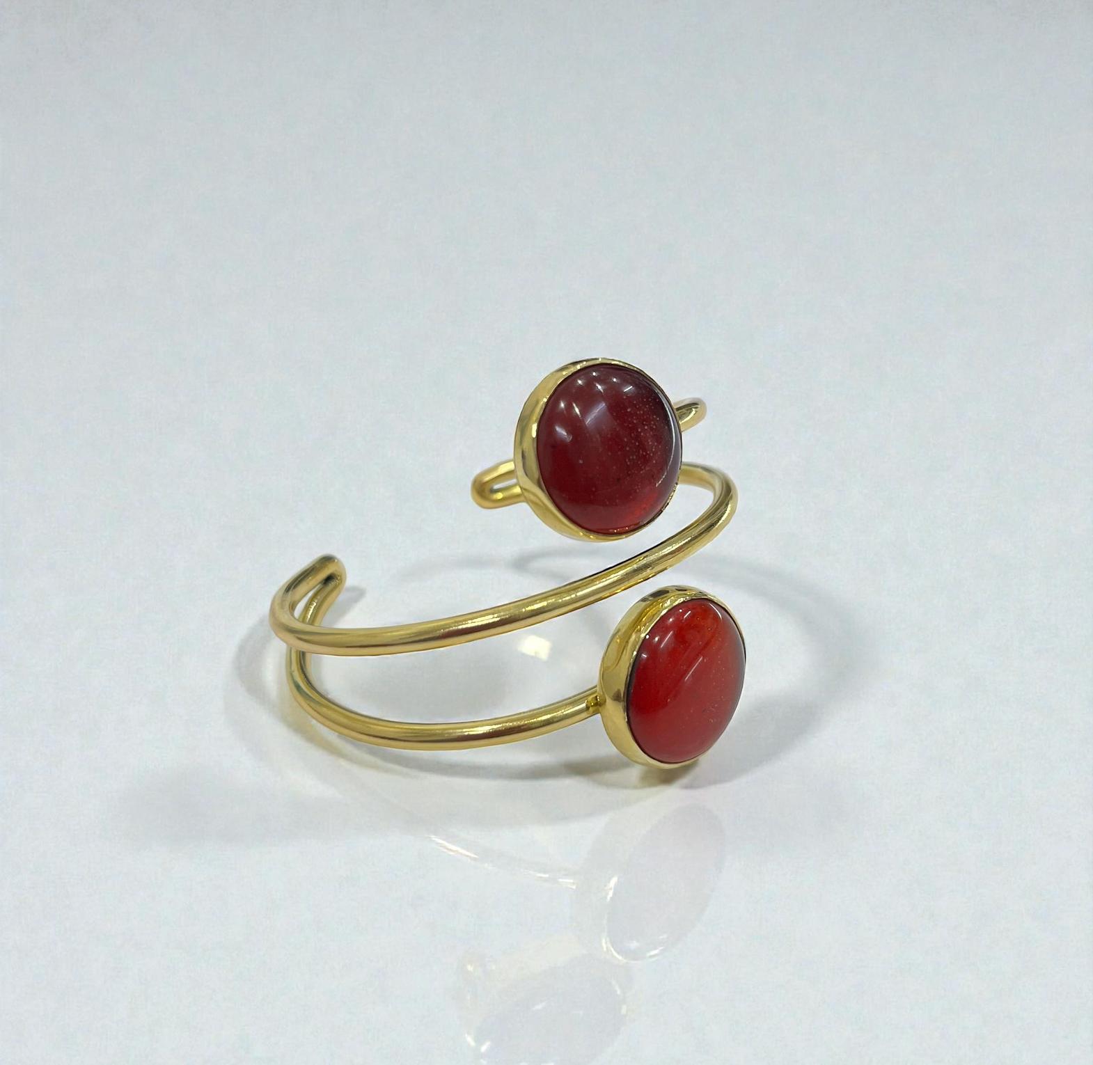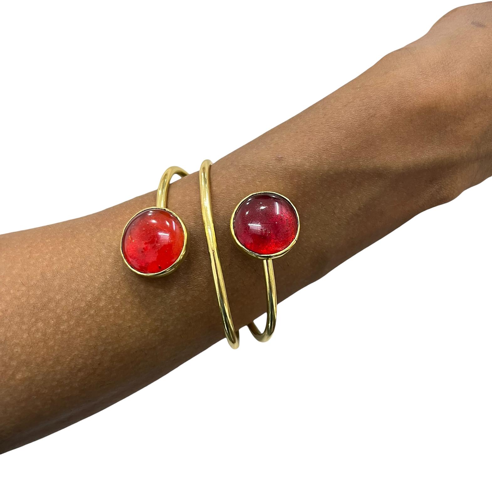 This stylish accessory is a open bangle,often handcrafted frommaterial like brass and featuring vibrant gemstones or glass elements.