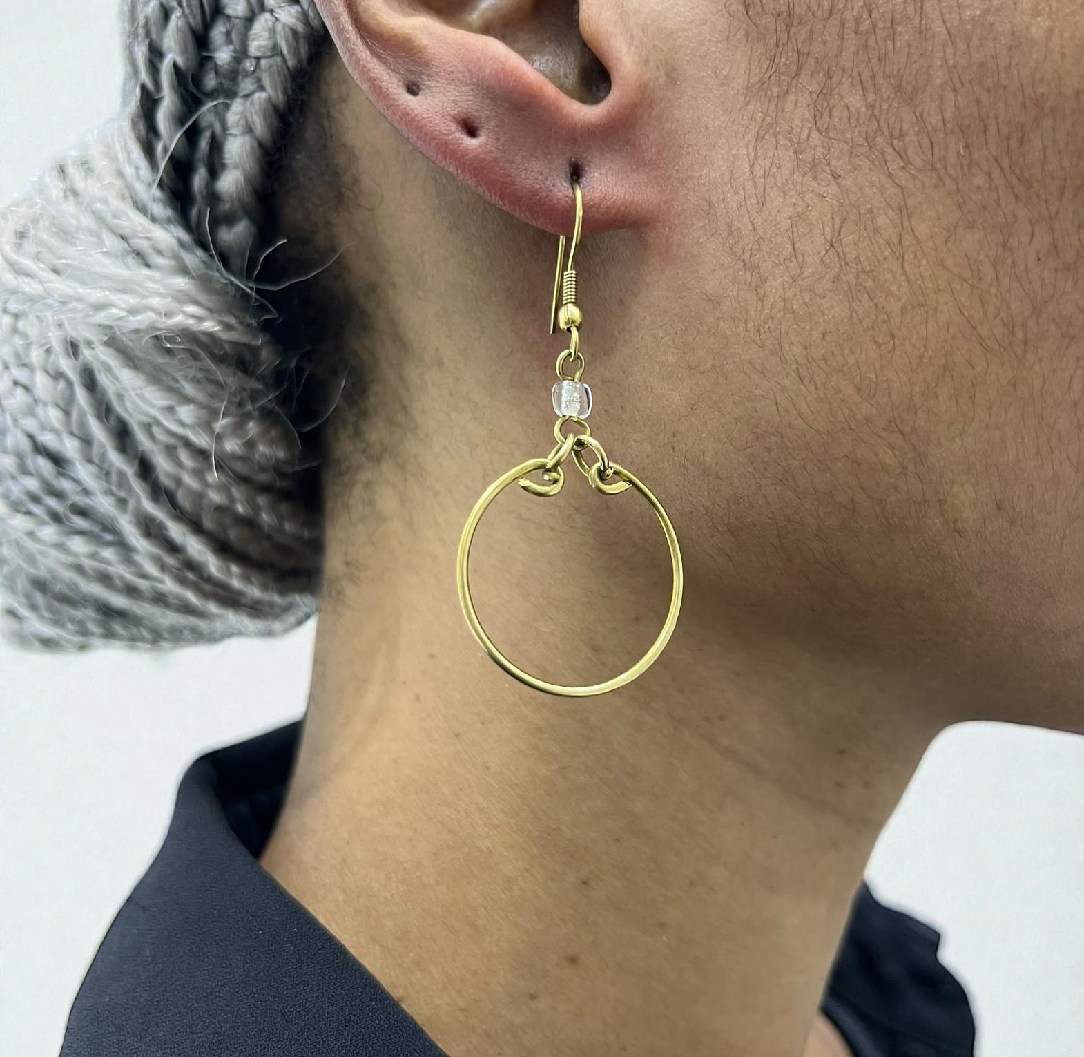 These earrings are typically crafted using wire-wrapping techniques,which allow for simple yet elegant designs that are lightweight and can be easily customized.