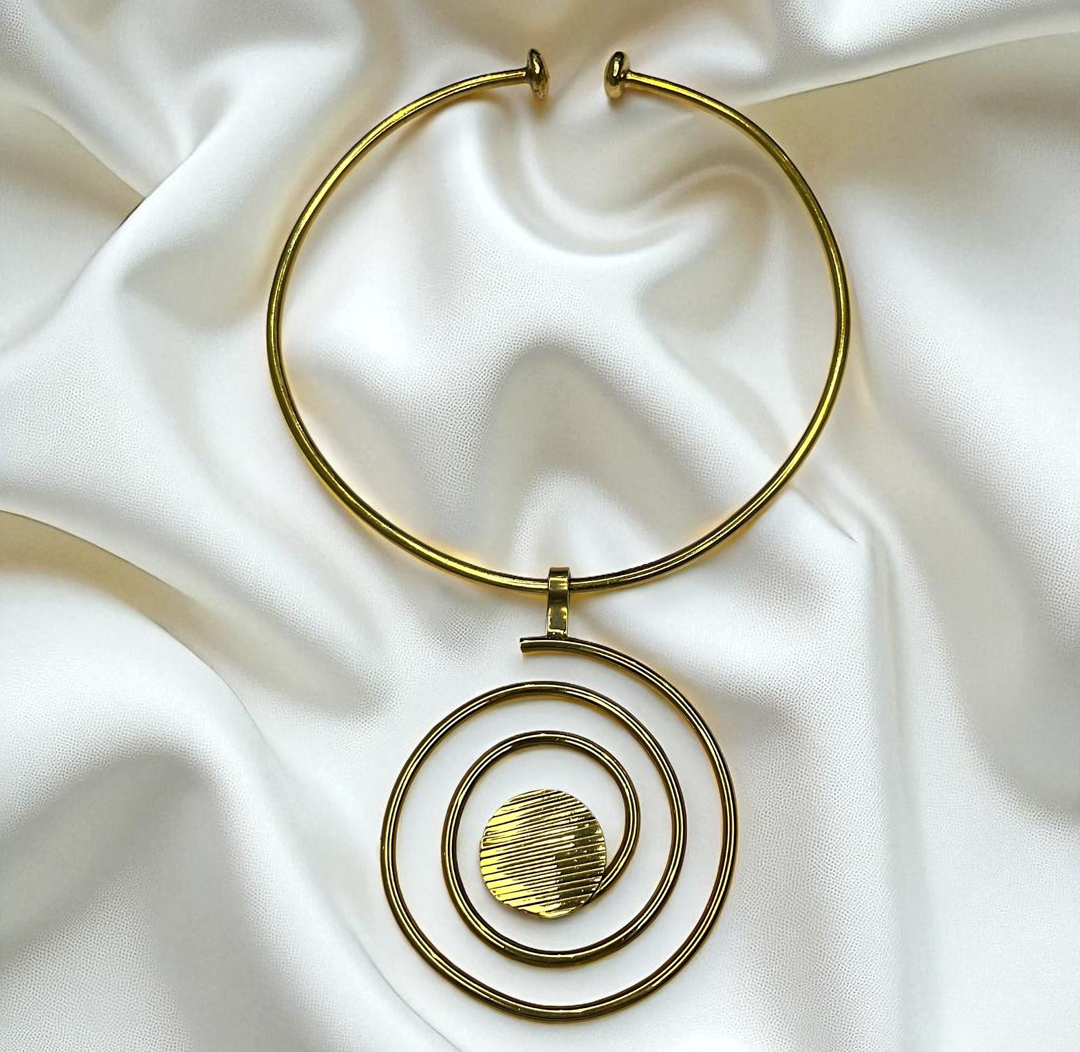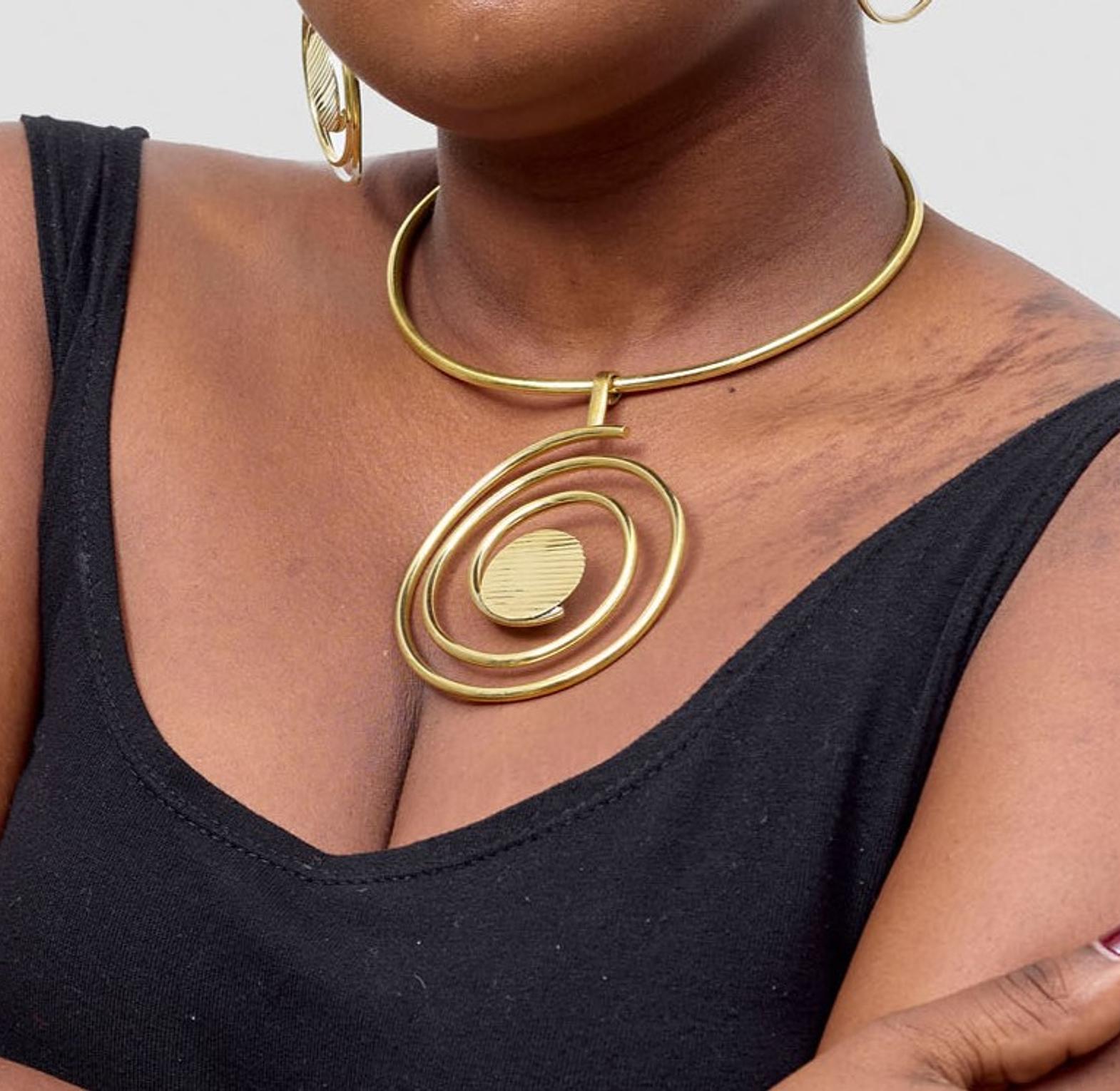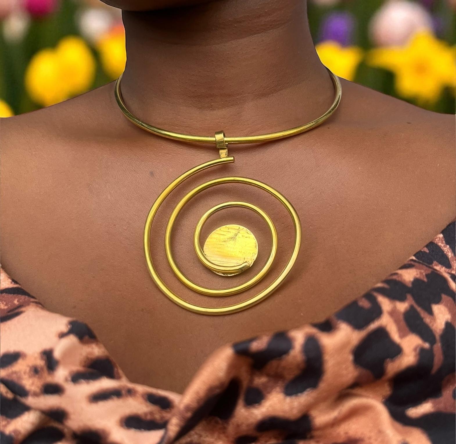 A brass choker inspired by He Has Been Seen (Yoruba).