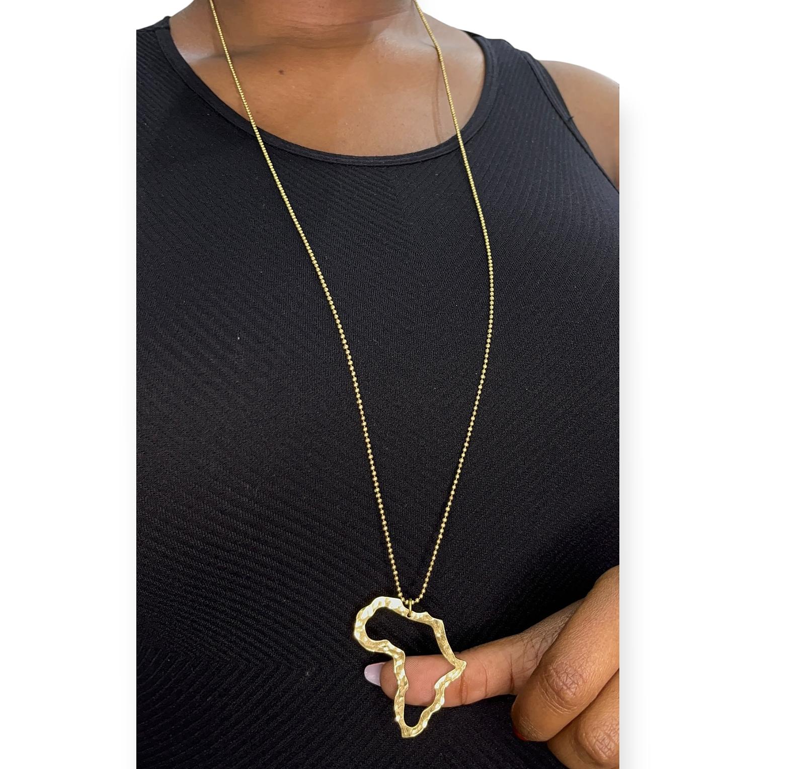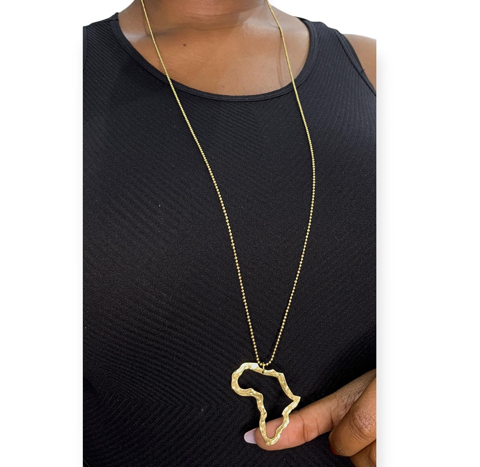 A brass long necklace inspired by Happy One (Kikuyu).