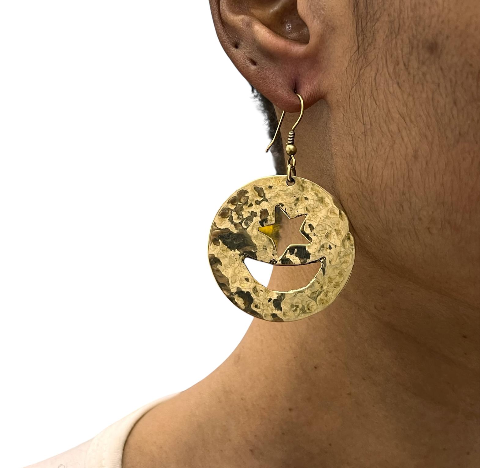 'Marjani' is a stunning pair of earrings made from hand-hammered brass, embodying a feminine with a regal edge aesthetic
