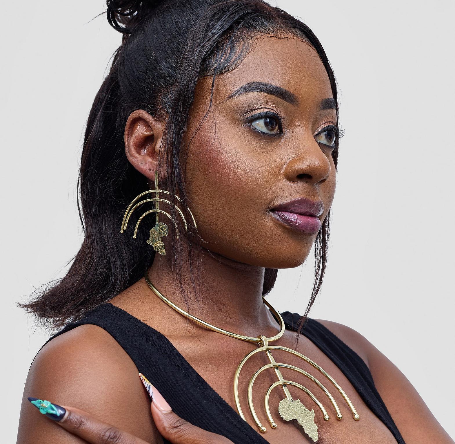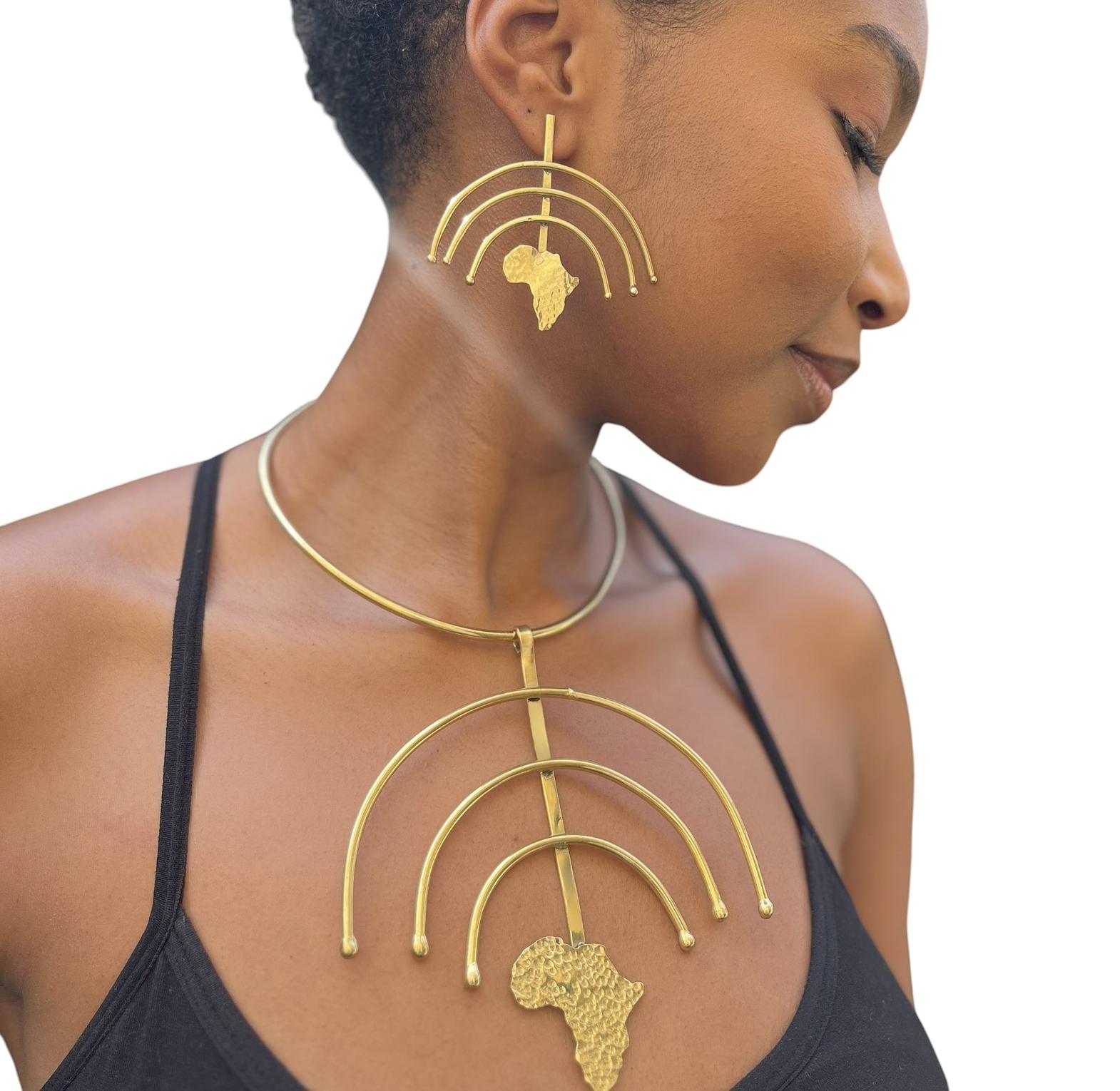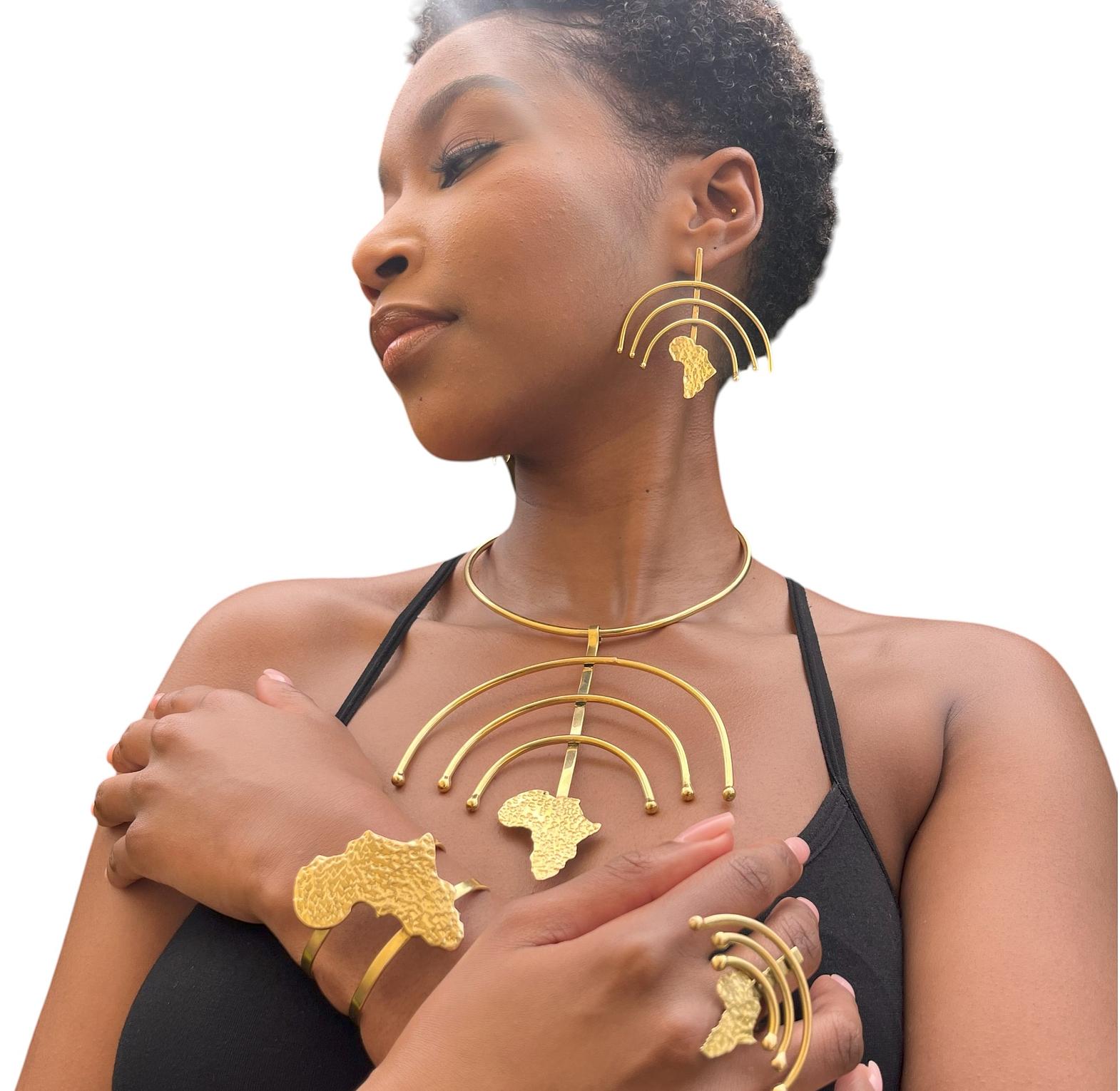 Perfectly coordinated African choker, earrings, bracelet, and ring ready to elevate any look.