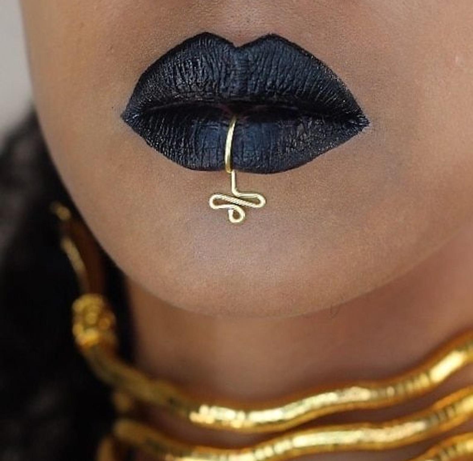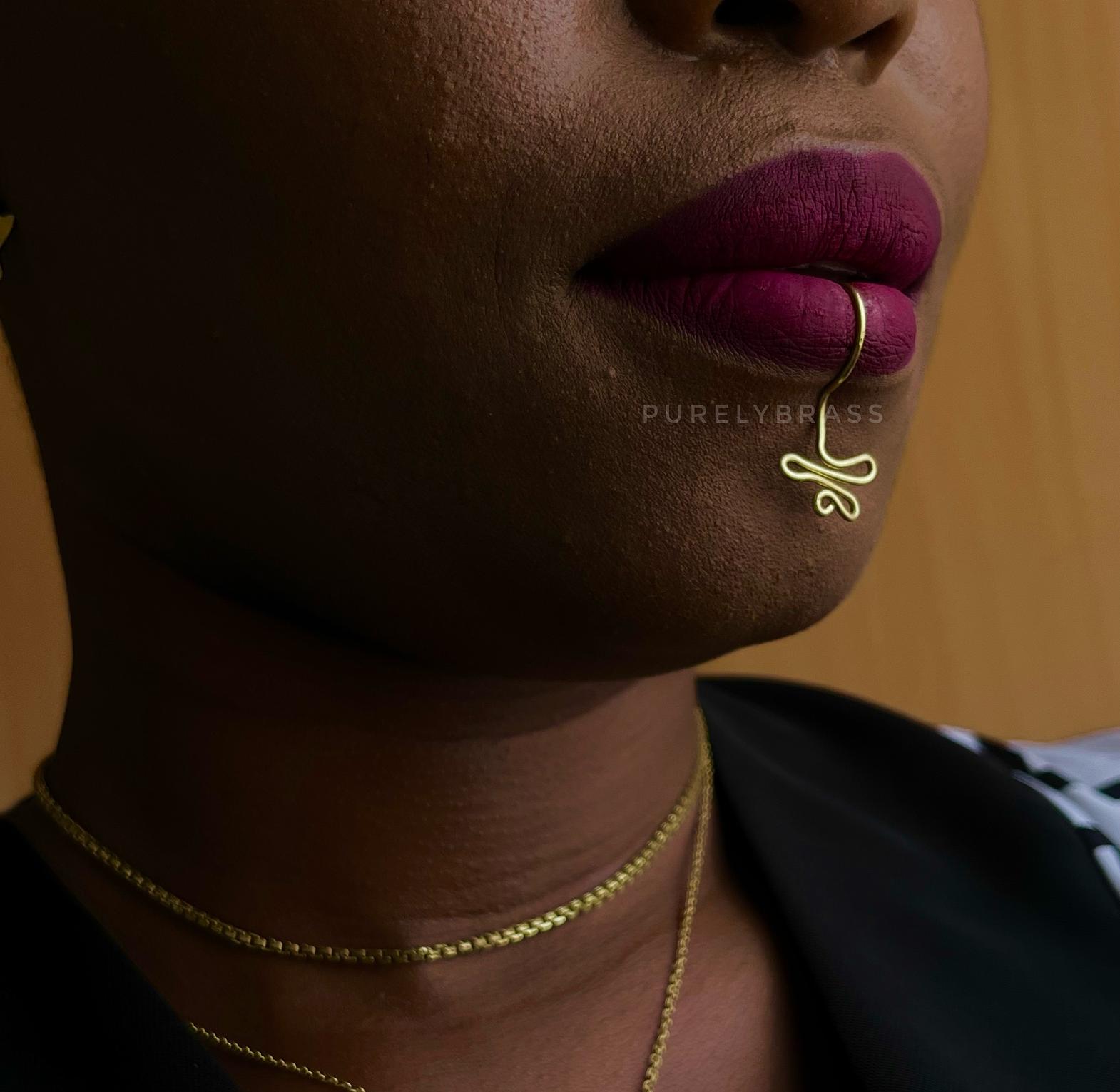 Each lip cuff is handmade with precision and care, ensuring that no two pieces are exactly alike. The artisans use high-quality materials that mimic the look and feel of genuine brass, providing a durable and long-lasting finish. The faux brass ensures that the cuffs are lightweight and comfortable to wear, making them perfect for all-day wear.