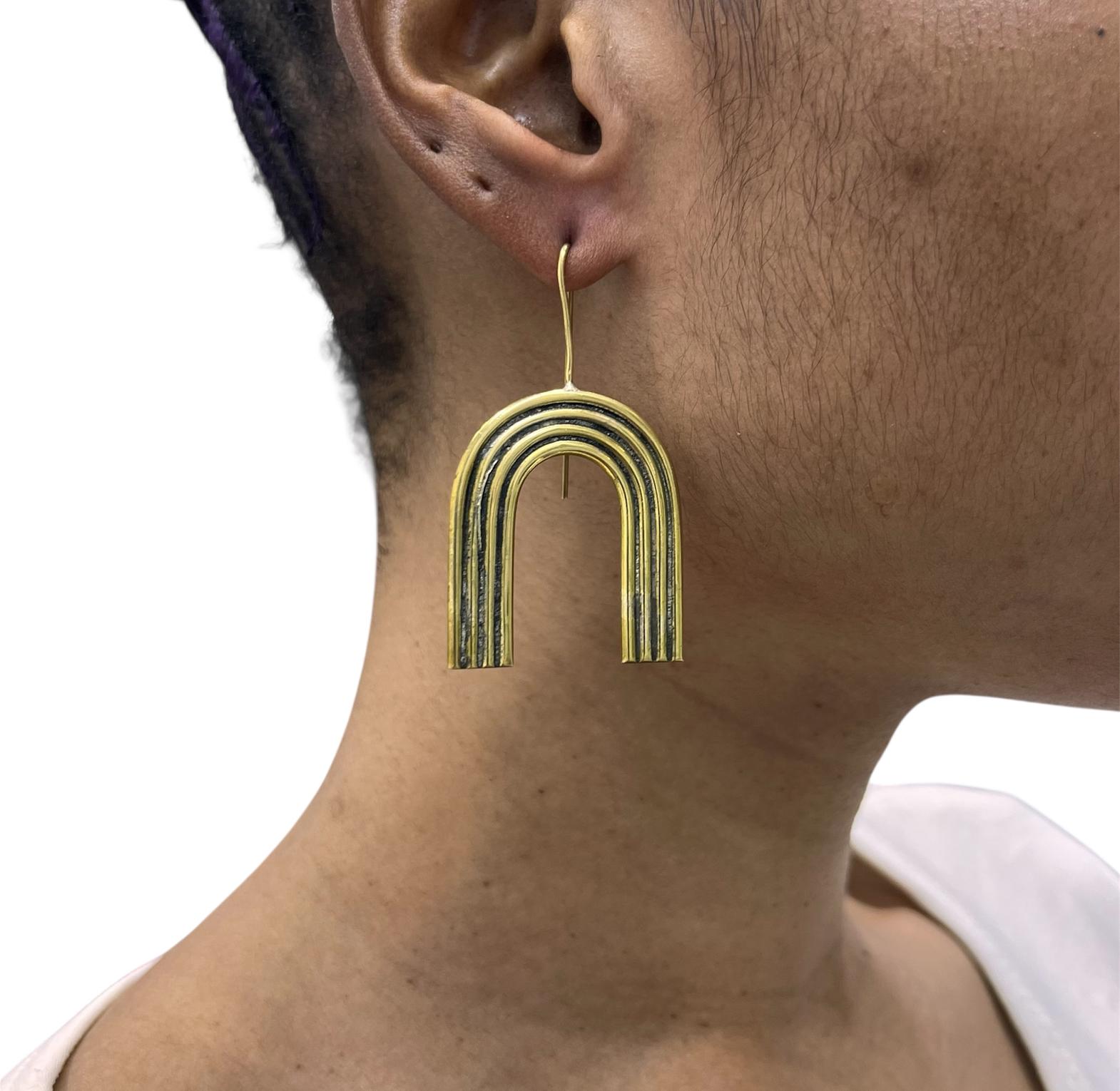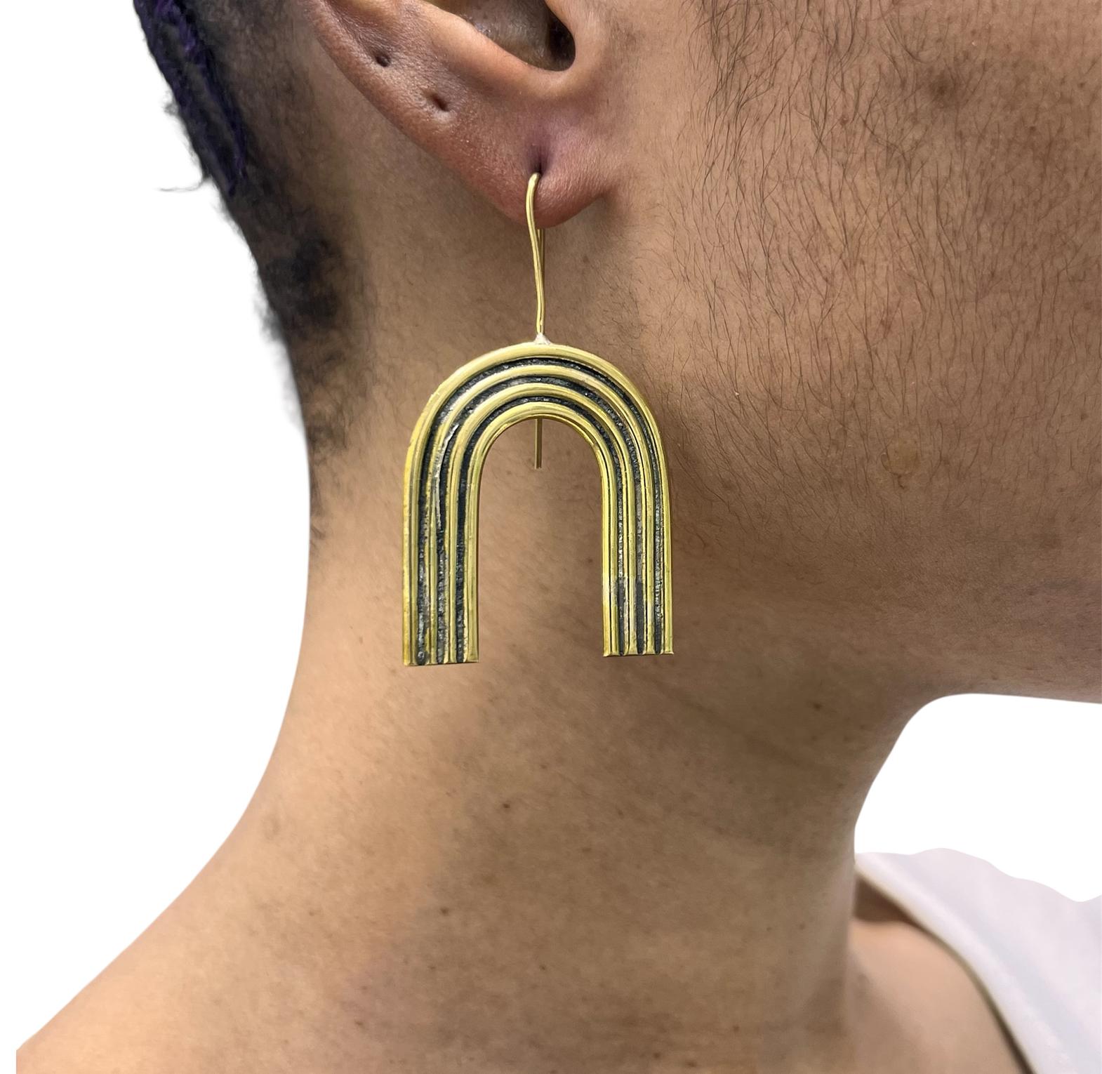 'Nala' is a stunning pair of earrings made from sun-kissed copper-brass alloy, embodying a geometric yet fluid aesthetic.