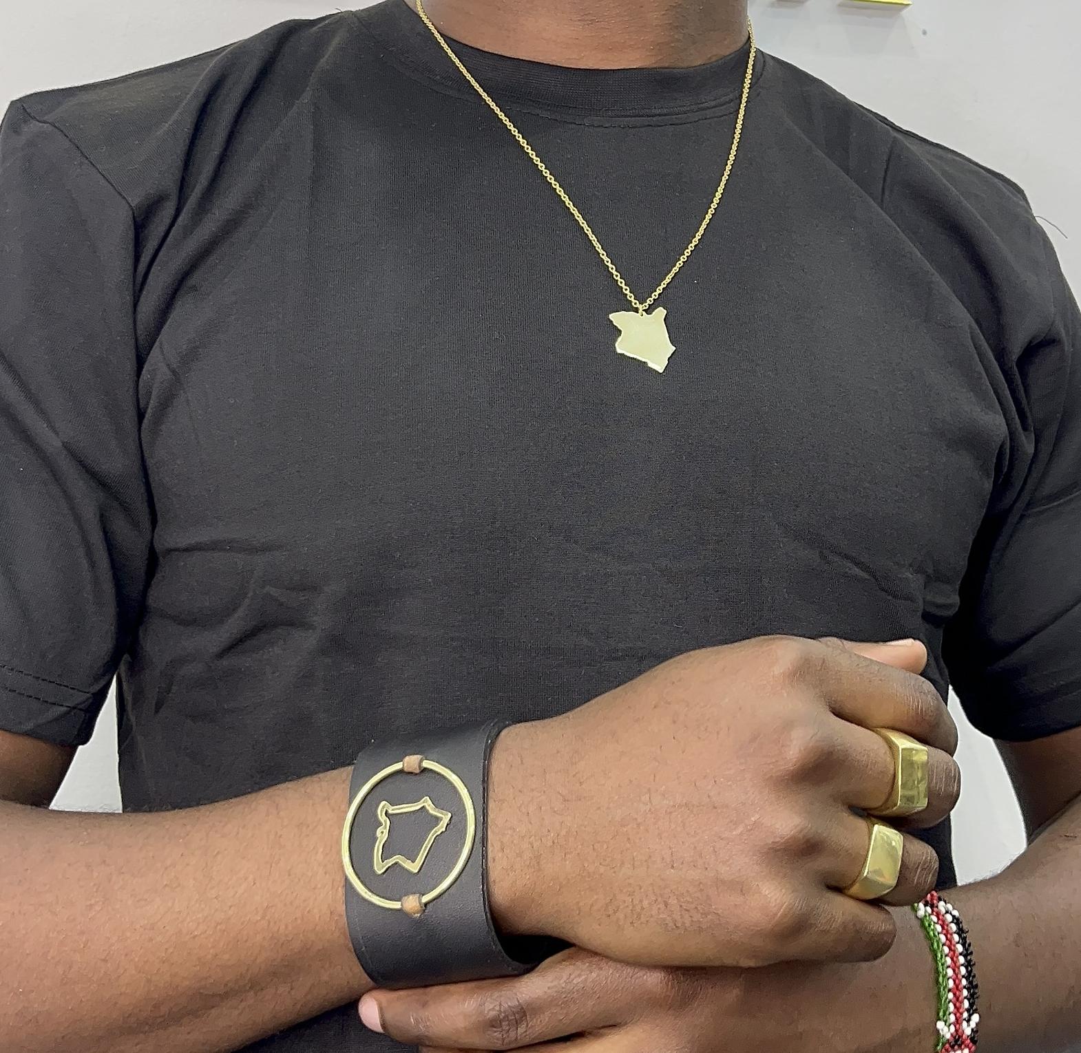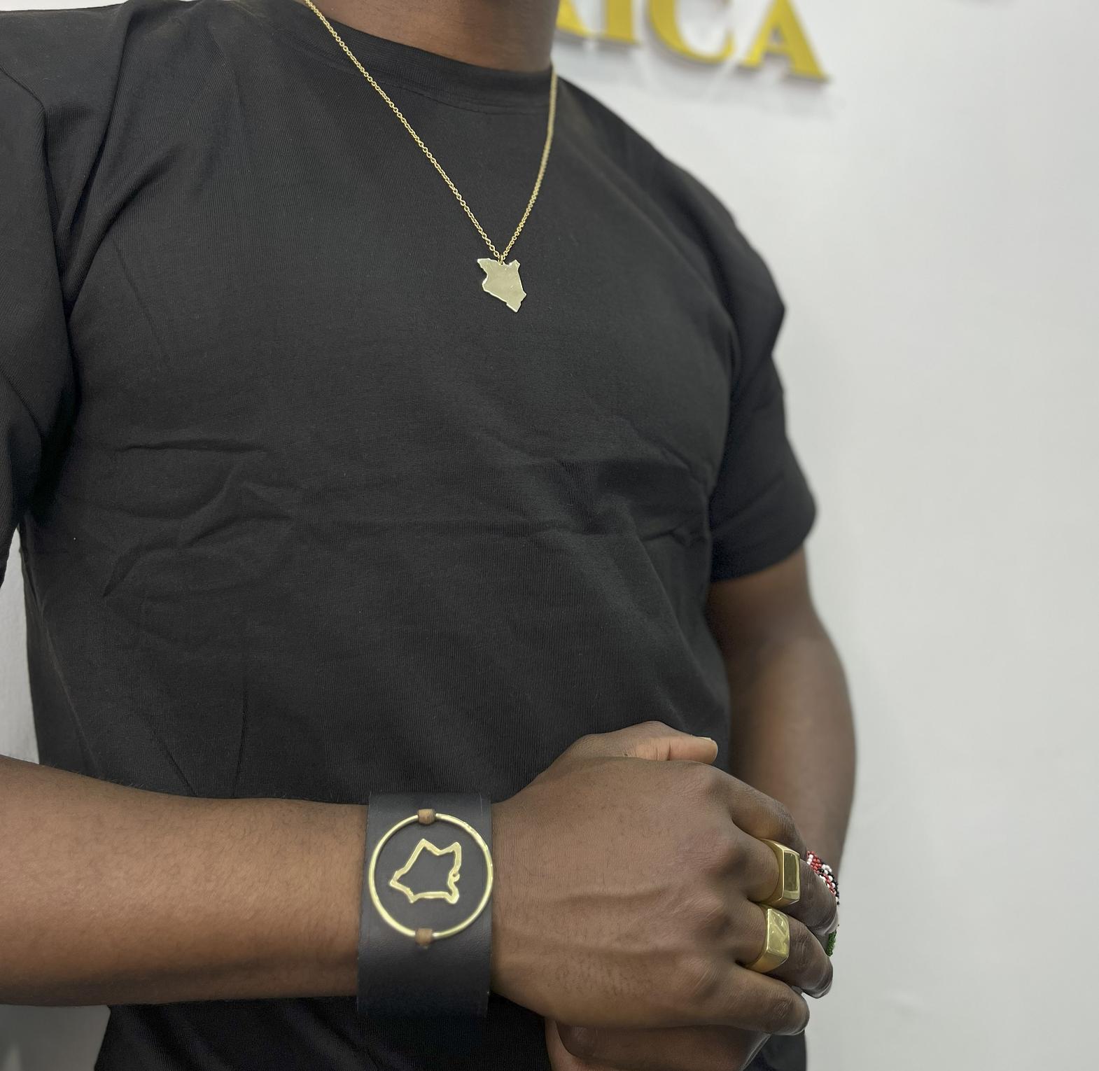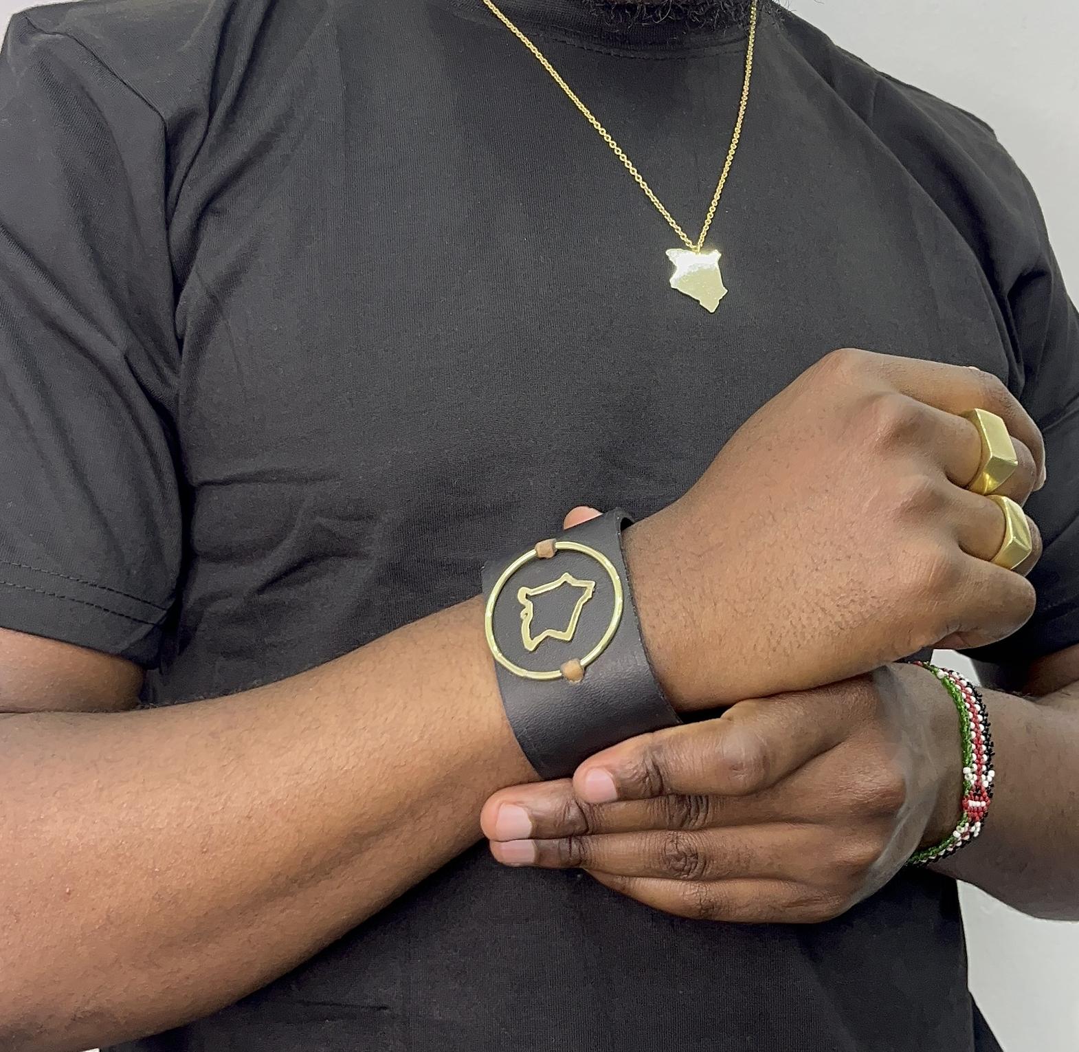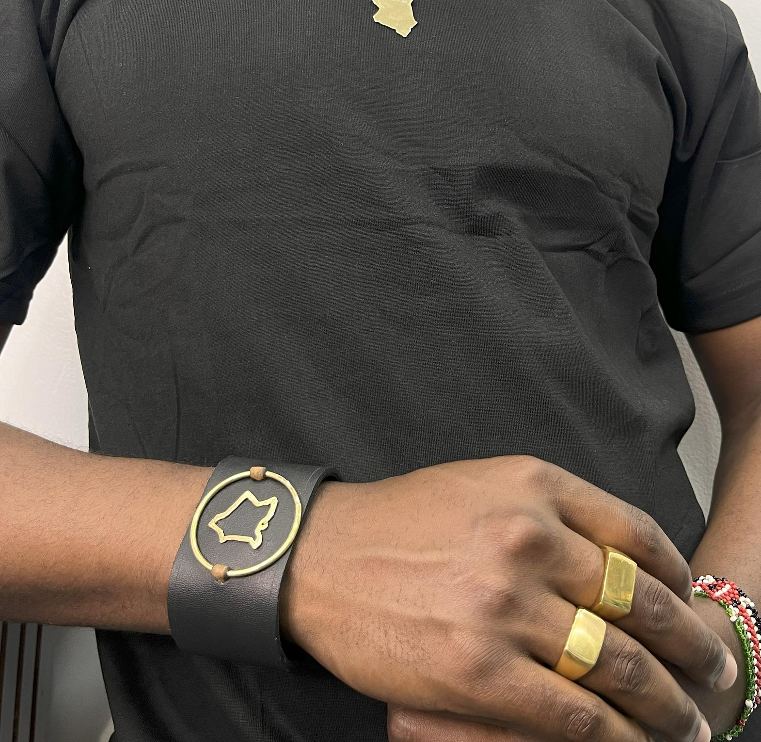 The Neo Bracelet is crafted from premium leather with bold brass accents, combining durability with style.