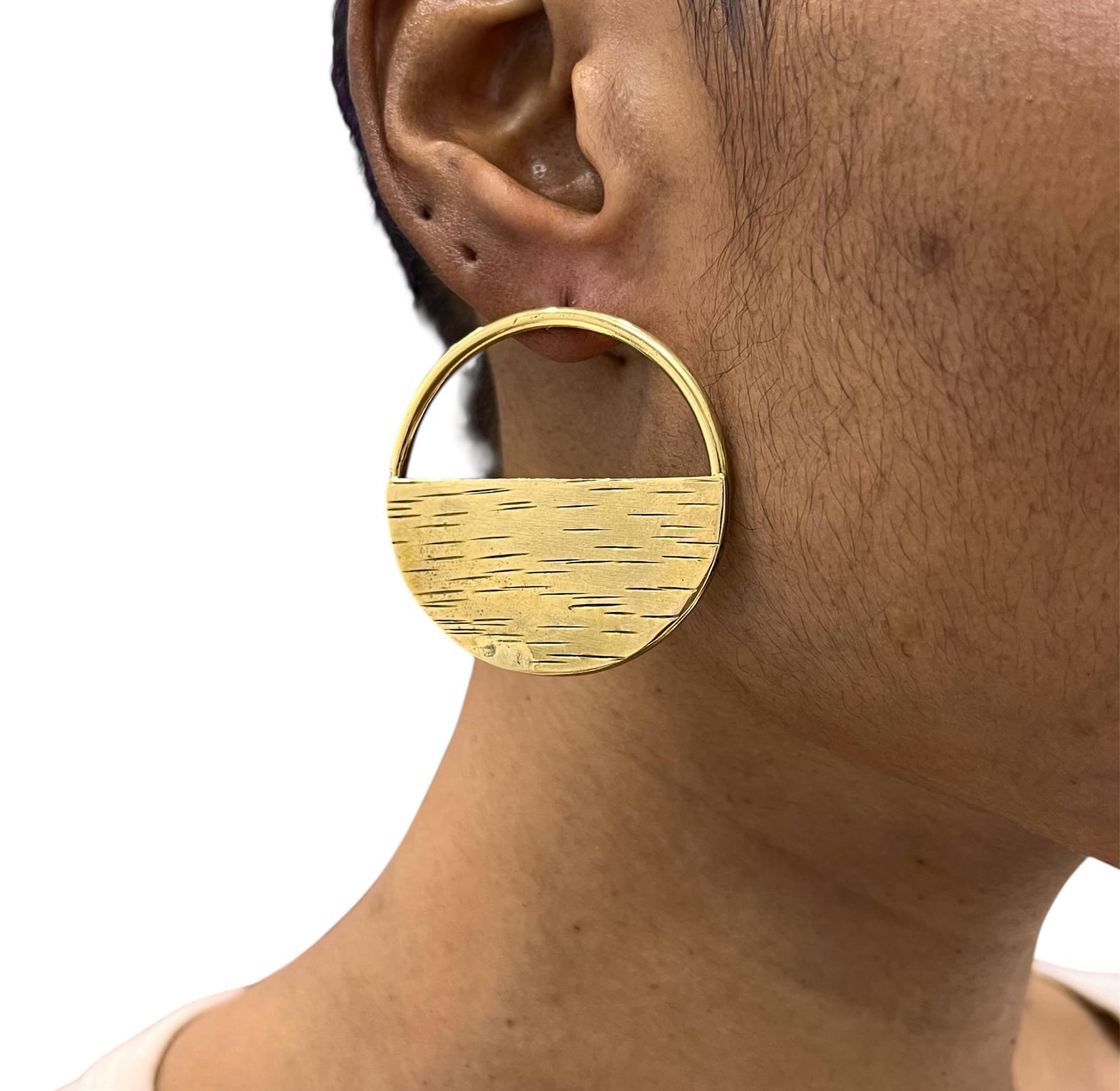 'Amana' is a stunning pair of earrings made from matte finished brass, embodying a geometric yet fluid aesthetic.