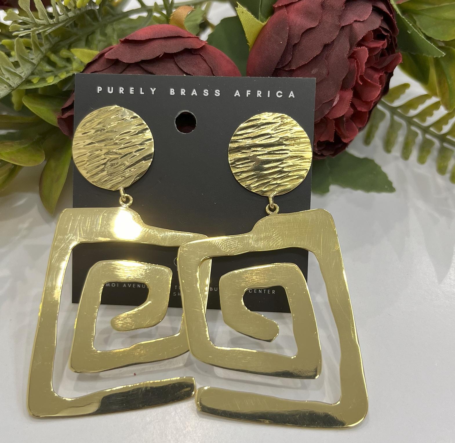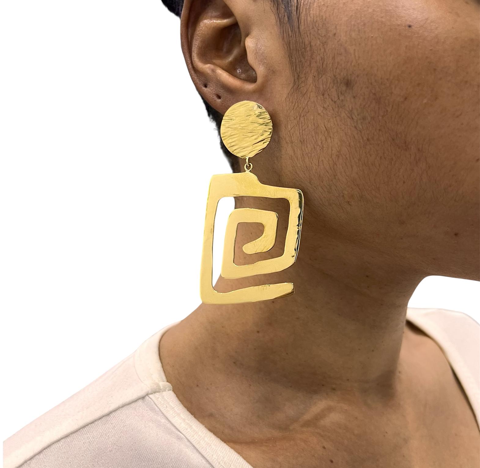 'Nia' is a stunning pair of earrings made from gold-plated brass with an artisanal touch, embodying a geometric yet fluid aesthetic.