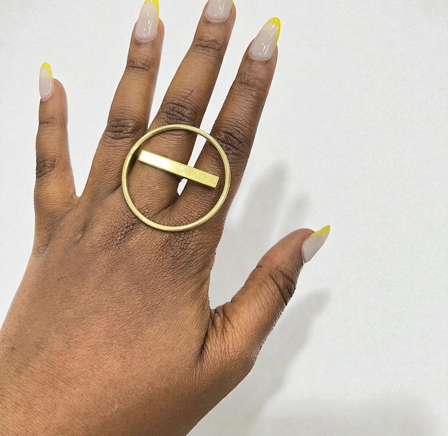 Open Circle brass ring with a gold bar.