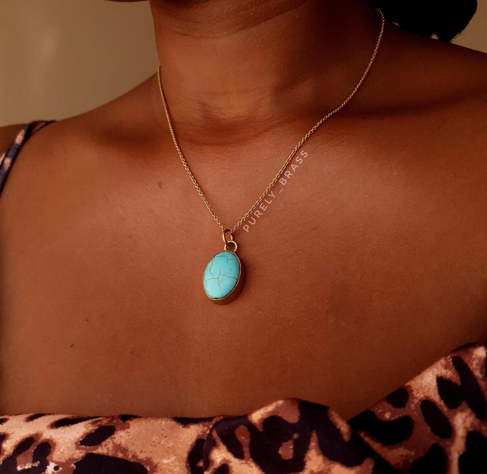An elegant brass necklace with a classic pendant design, perfect for a touch of timeless charm.
