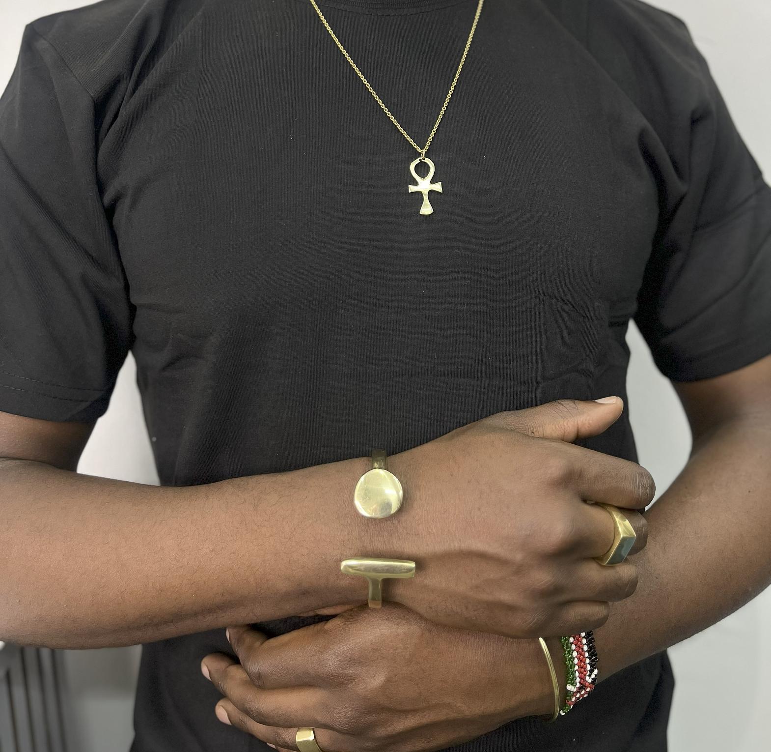 The Sekou Bracelet is made entirely of solid handcrafted brass, combining durability with style.