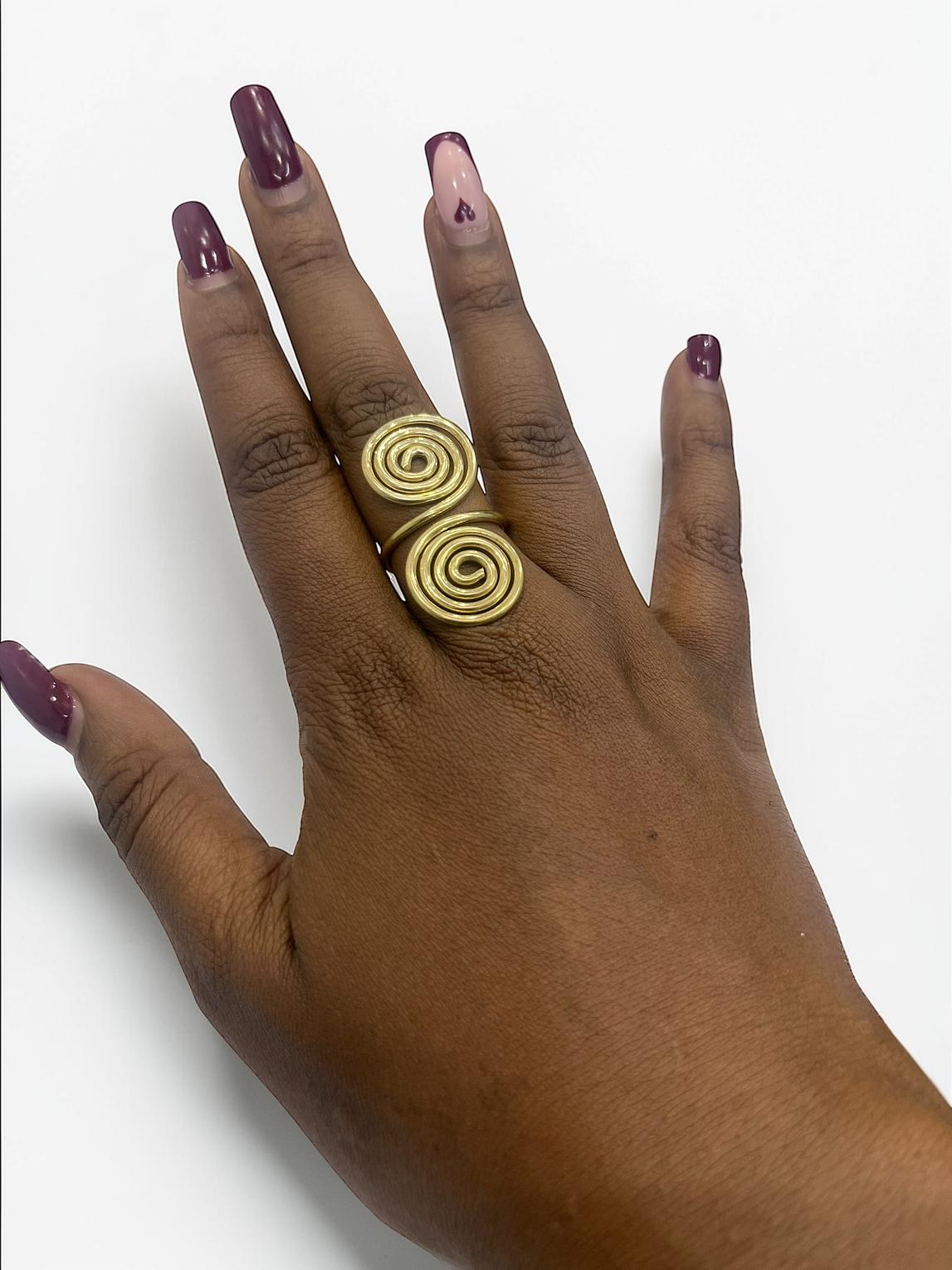 It is designed as an open adjustable ring,allowing for a comfortable fit on variours finger sizes.