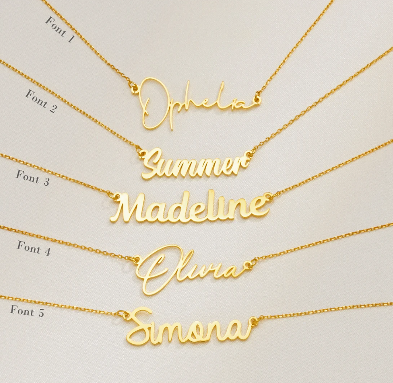 This name necklace is made from high quality brass, it is a perfect gift for mom, sister, best friend, bridesmaid or yourself! Let us know below the custom name, font and the inches preferred for the necklace. Note: Delivery for orders placed is after two days.